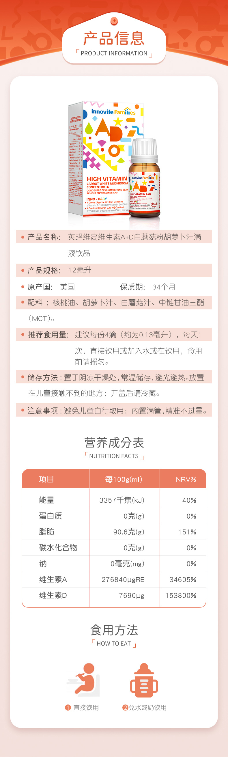 英珞维维生素AD滴剂婴幼儿新生儿儿童复合维生素1岁以上宝宝12ml