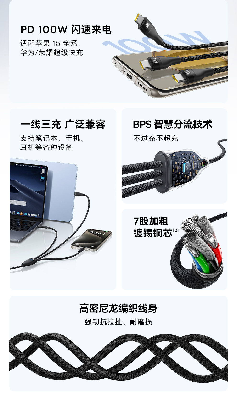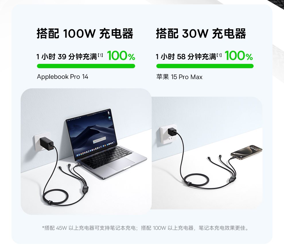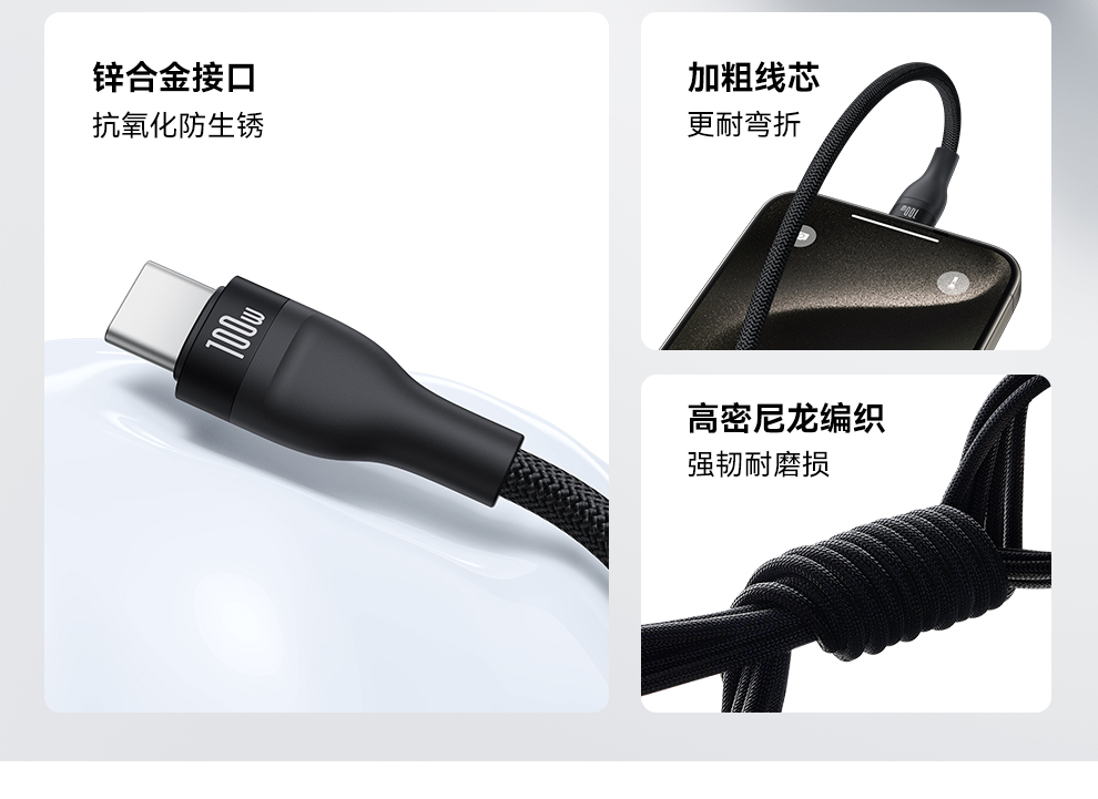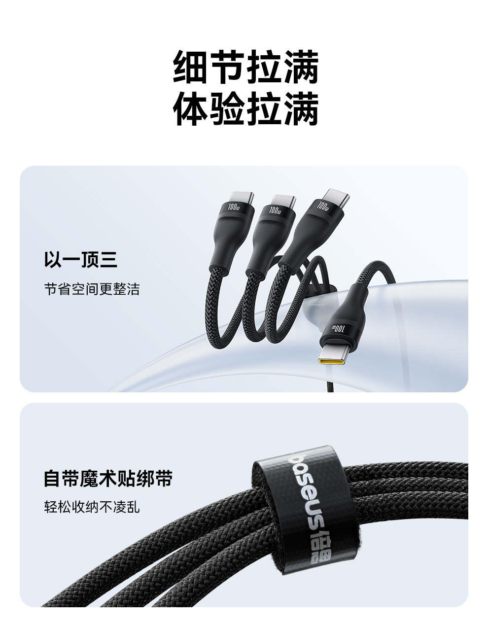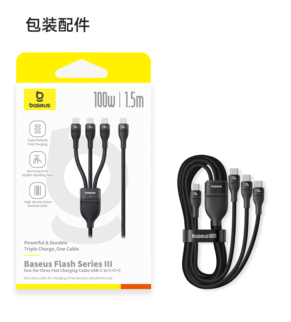 倍思 闪速系列 3 一拖三快充数据线100W 1.5m