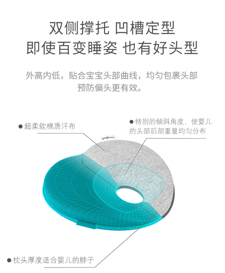babymoov婴儿枕头防偏头定型枕0-1岁头型矫正新生儿纠正偏头6个月 心型