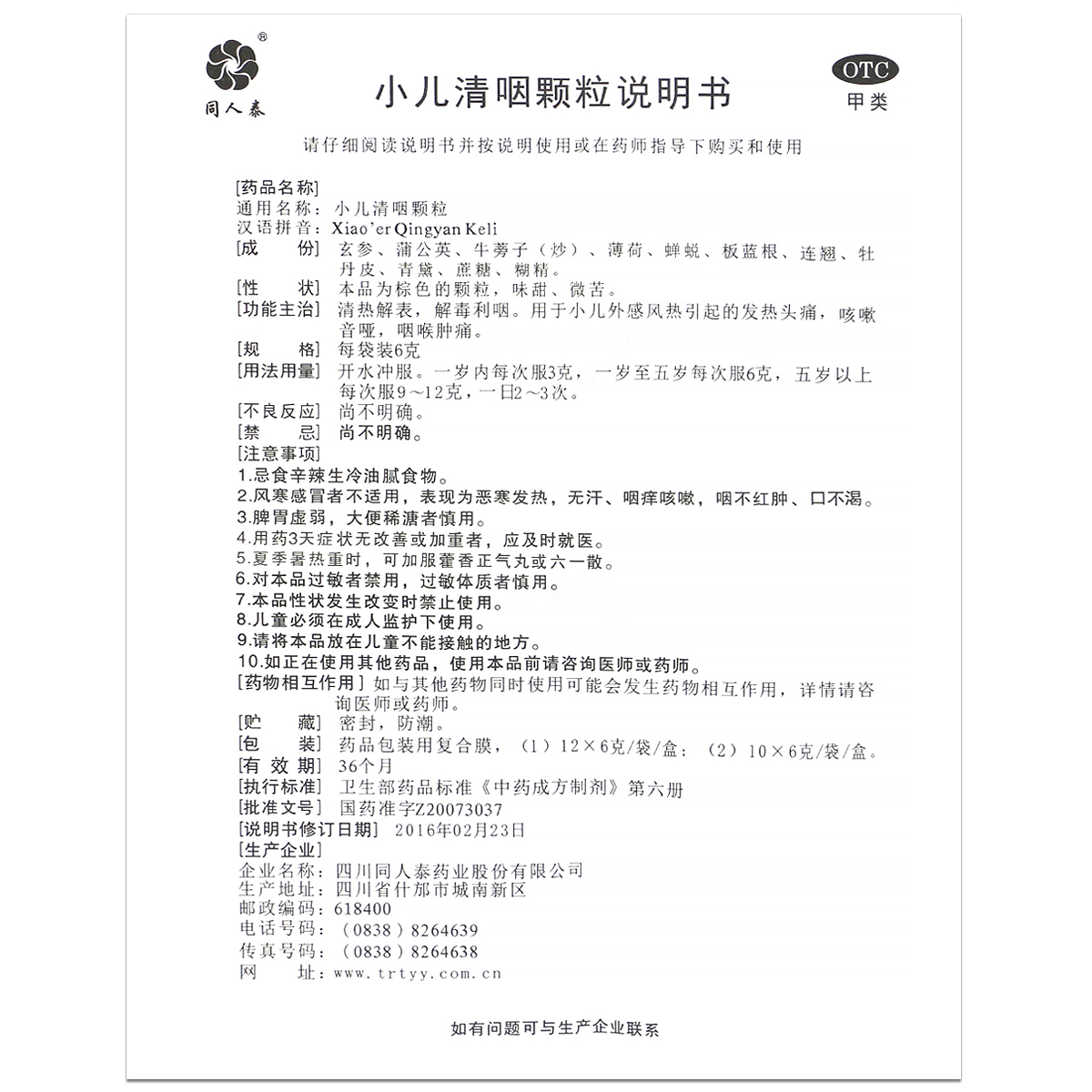 同人泰小儿清咽颗粒6g*10袋/盒咳嗽音哑咽喉肿痛清热解表解毒利咽
