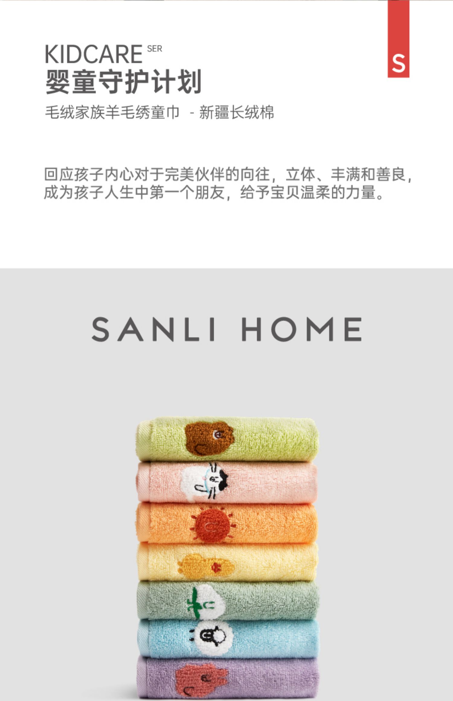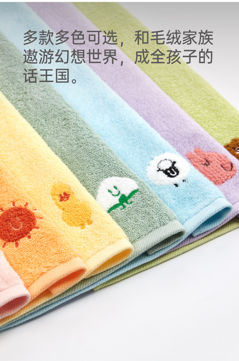 三利儿童毛巾全棉吸水洗脸洗澡家用柔软宝宝小毛巾可爱卡通长绒棉