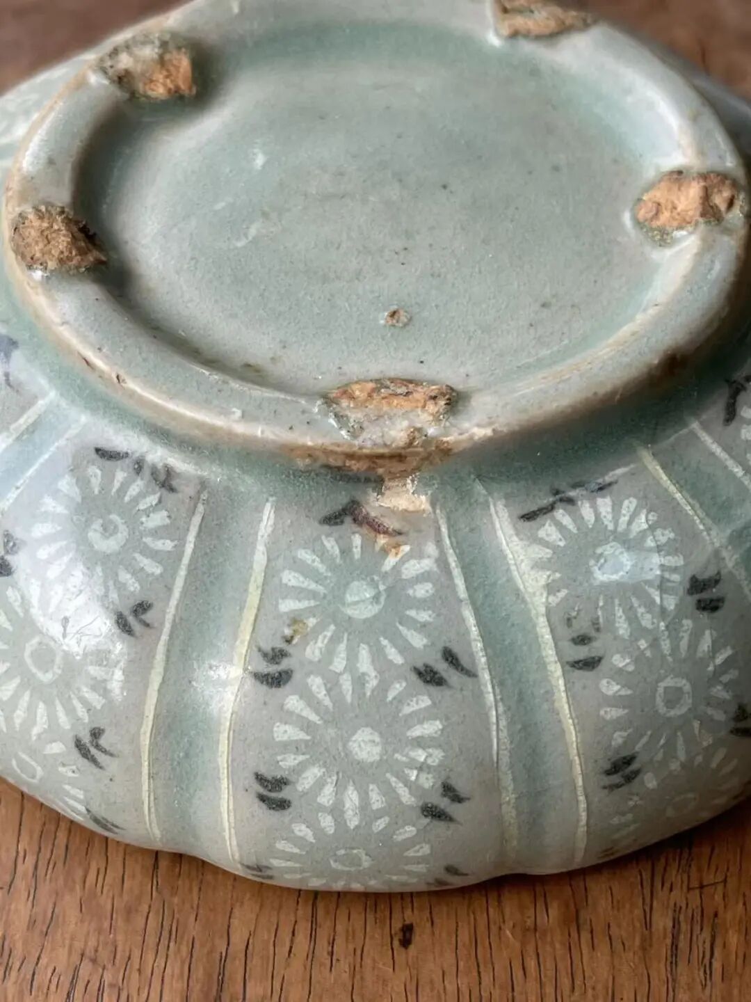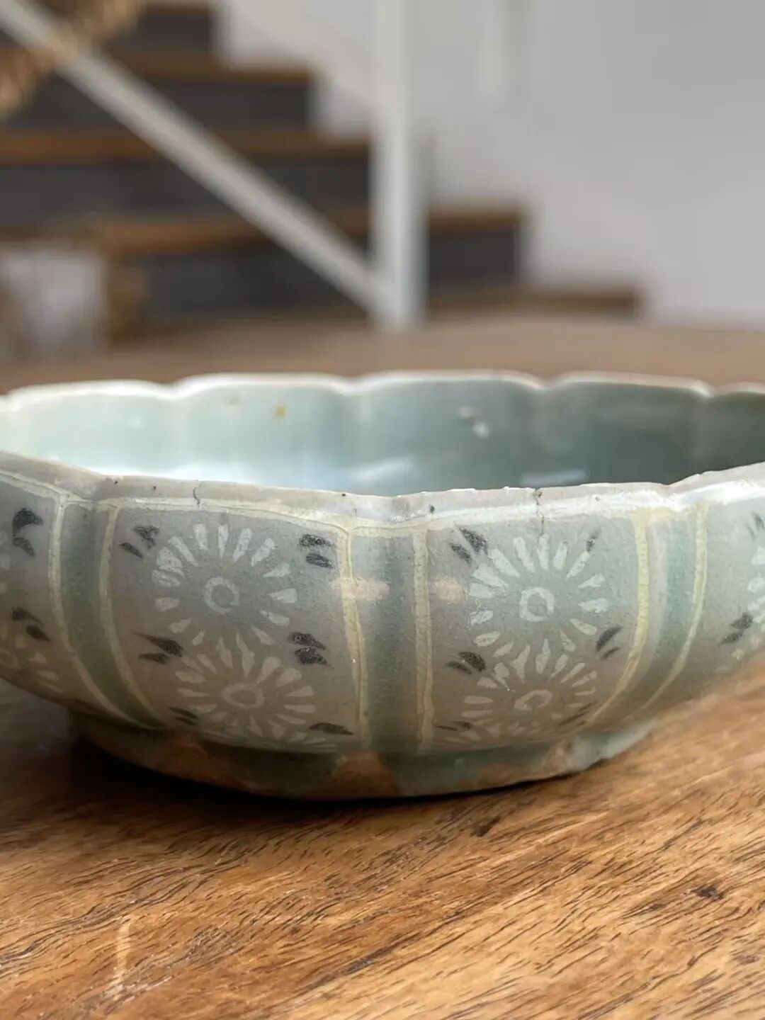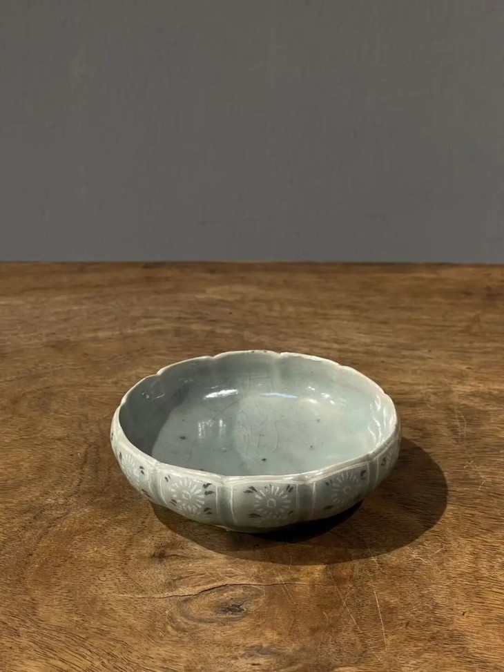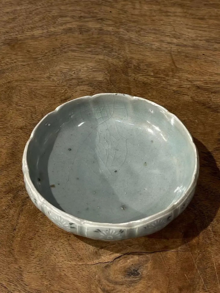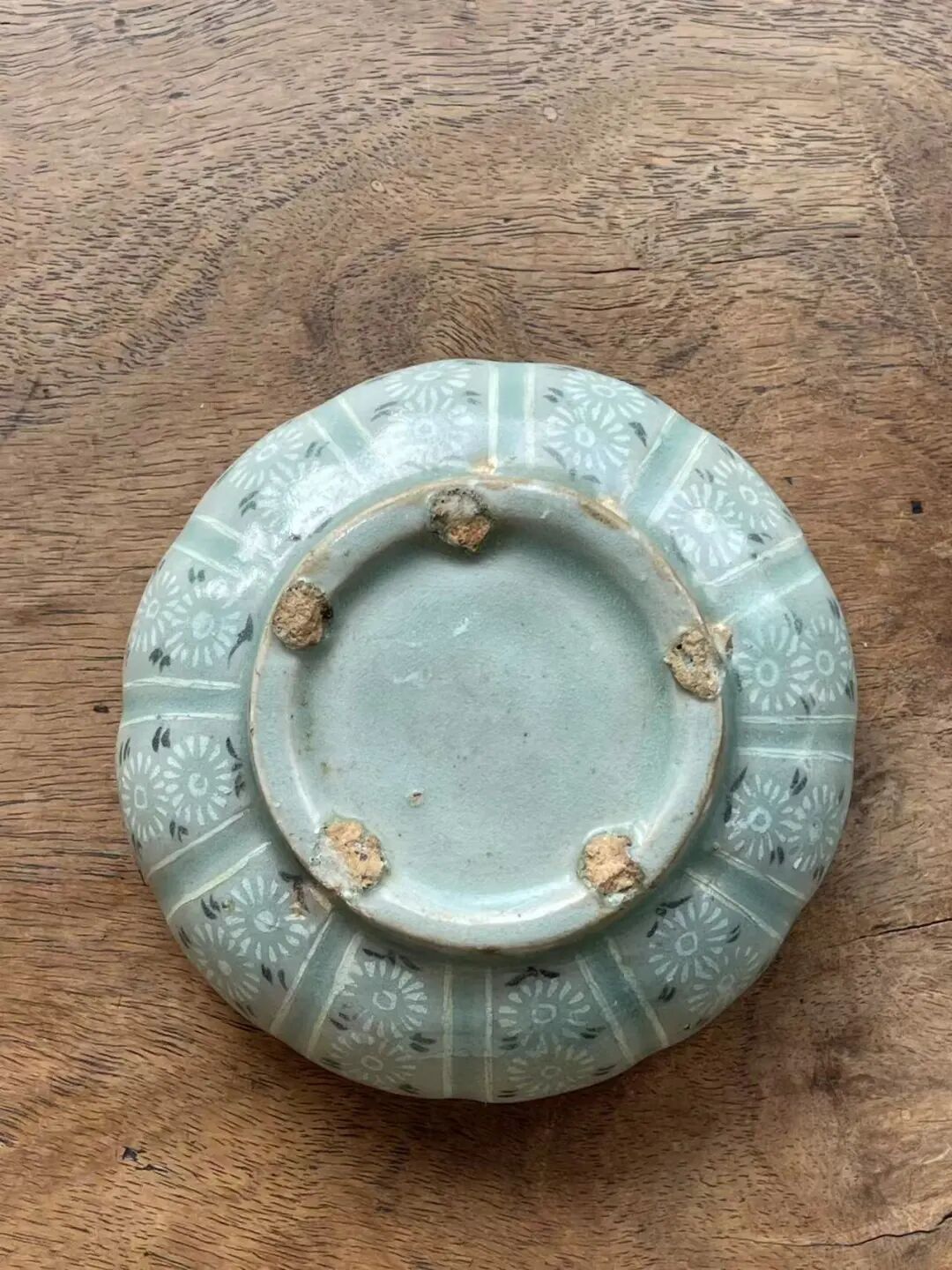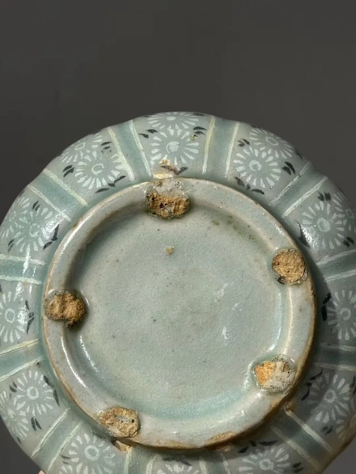 此象嵌青瓷花卉纹瓜棱束口笔洗,是一位专注于朝鲜瓷器的收藏家提供的藏品,如图所示,除表面有正常使用刮痕与磨痕外,除此以外保持完好。