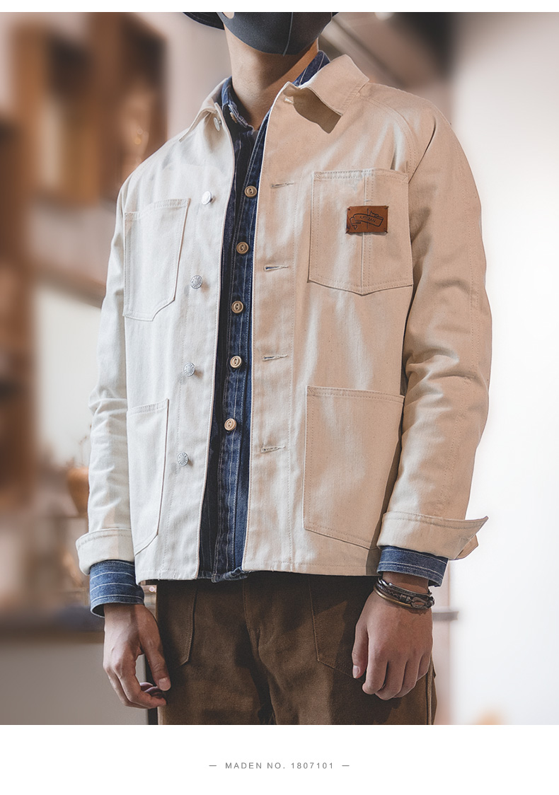工装优选美式复古重磅毛呢卫衣宽松保暖拼接口袋圆领上衣男秋冬季