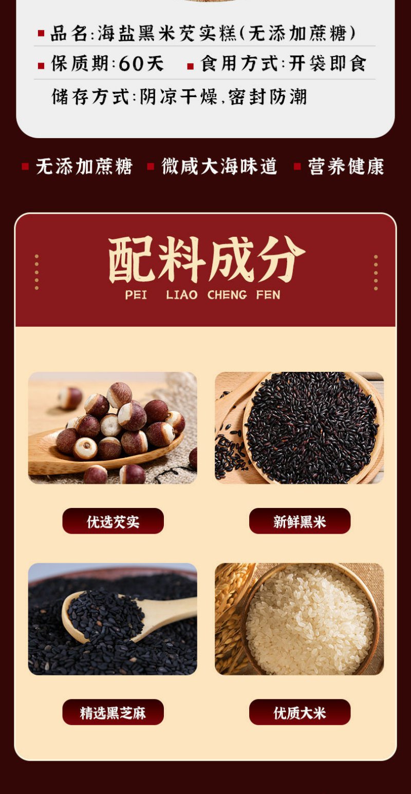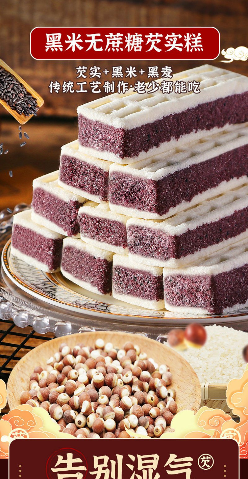 无蔗糖 海盐黑米芡实糕 芡实饼糕点早餐孕妇老年人健康休闲零食代餐