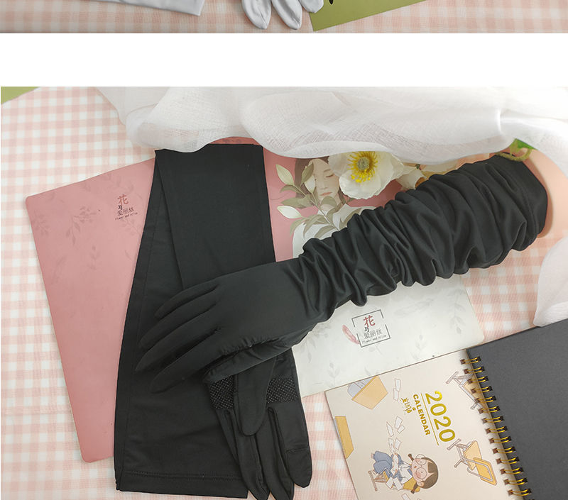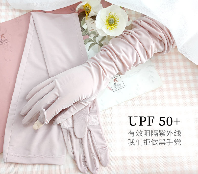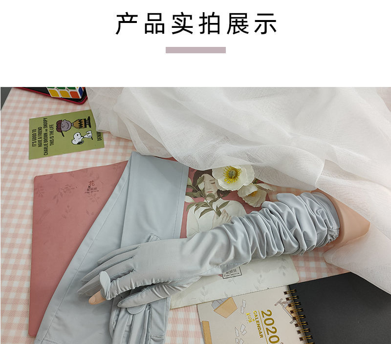 开车防晒手套女长袖夏季冰丝骑车遮阳长款手臂套防滑半指触屏袖套