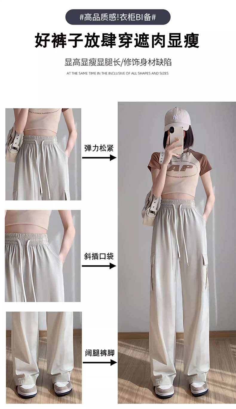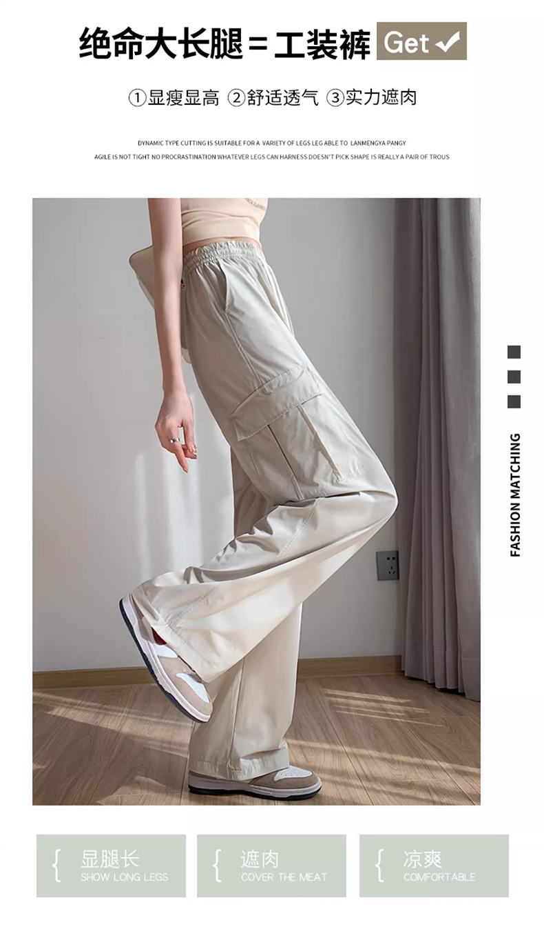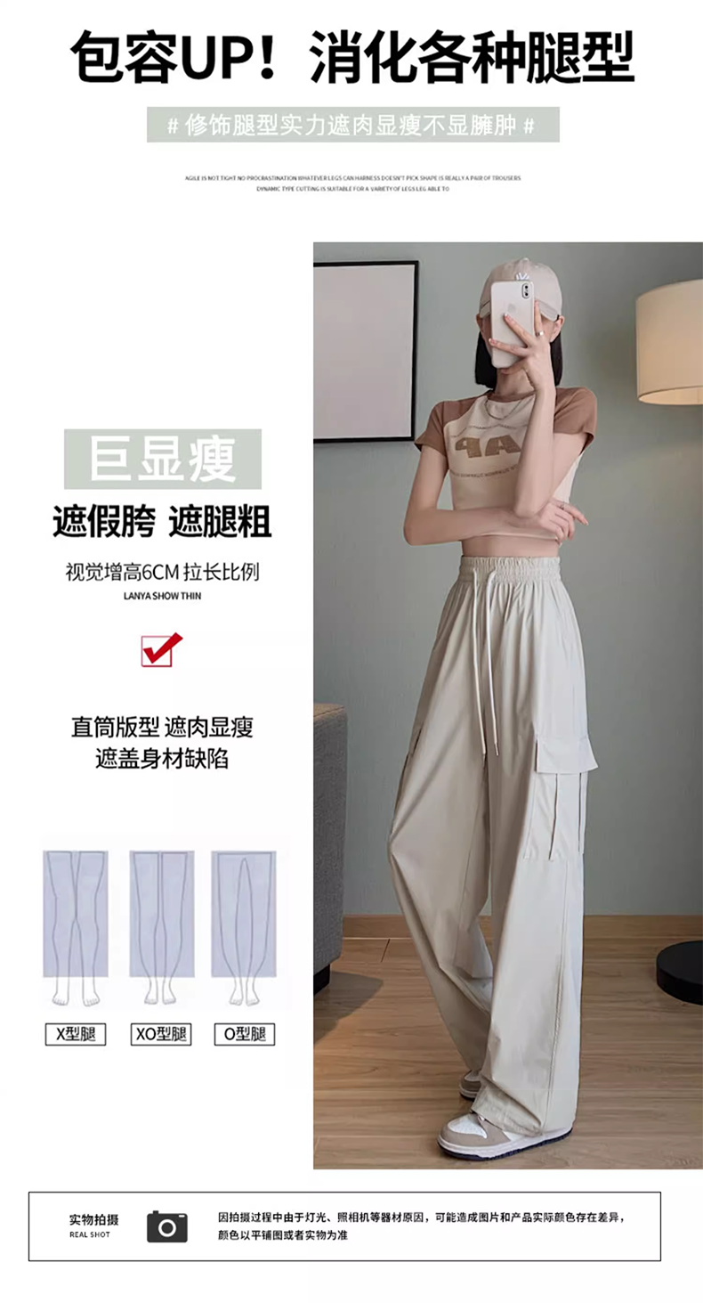 【拉夏同款美式高街工装裤防晒裤】面料轻薄速干,透气又防晒!版型巨好,显高显瘦遮肉!自带凉感,穿上立降5度!