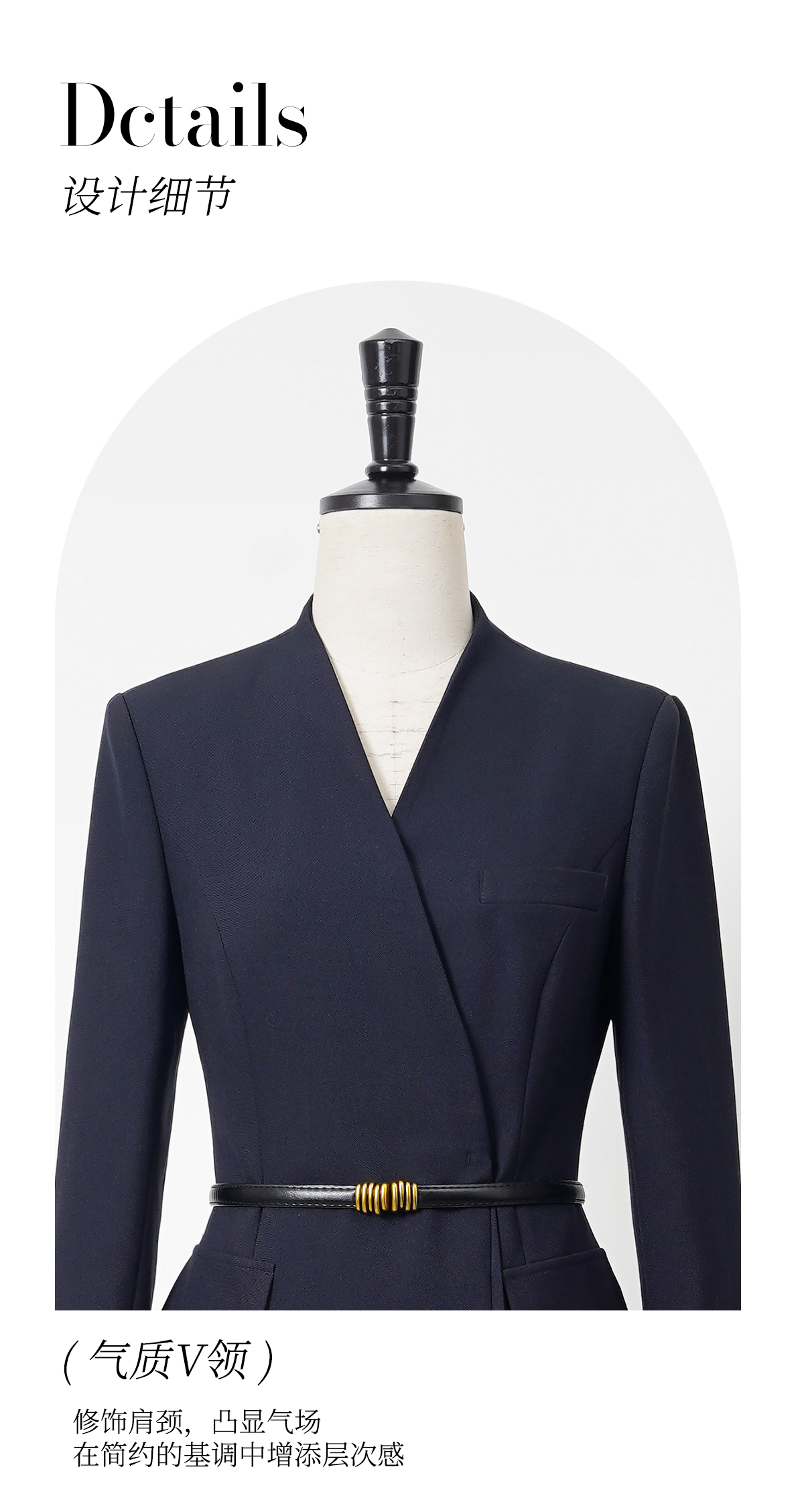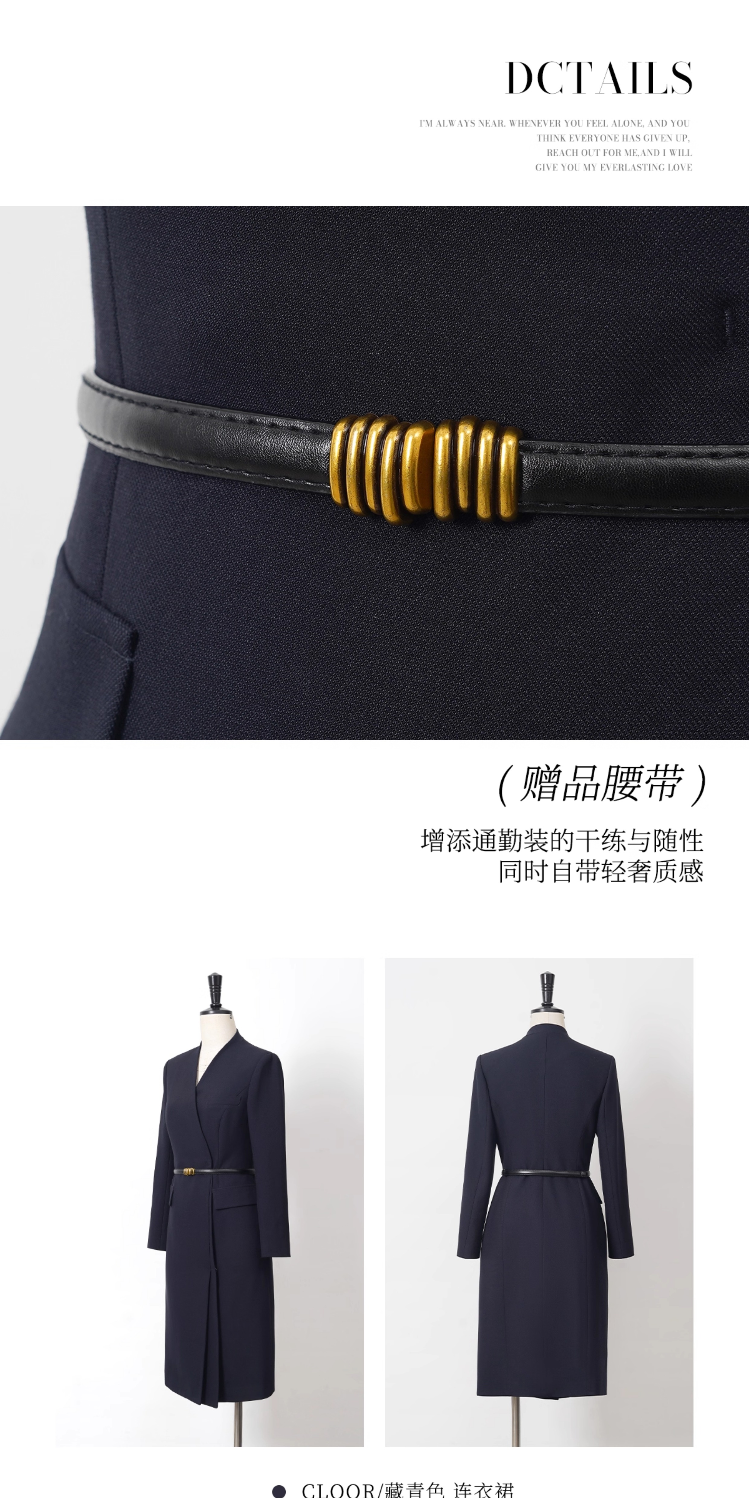 艾尚臣通勤西装连衣裙女新款藏青色职业装裙子高级感主持人工作服