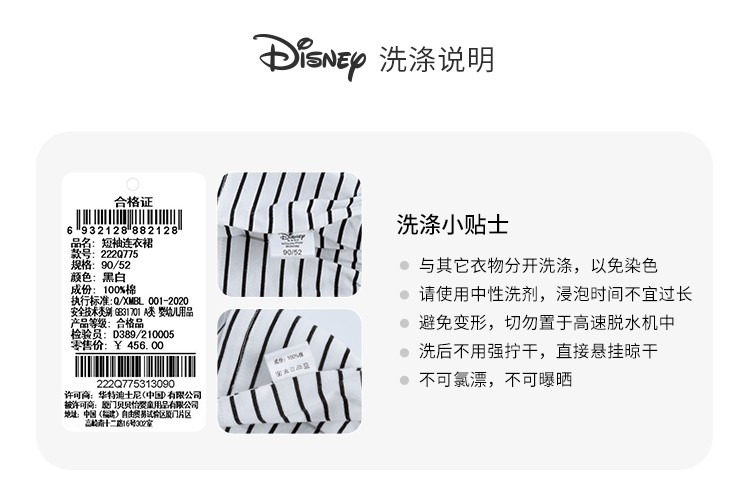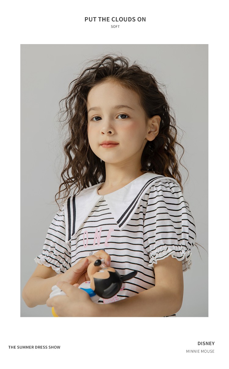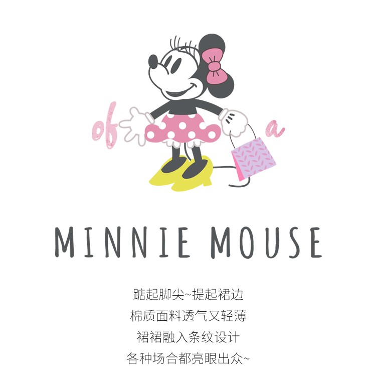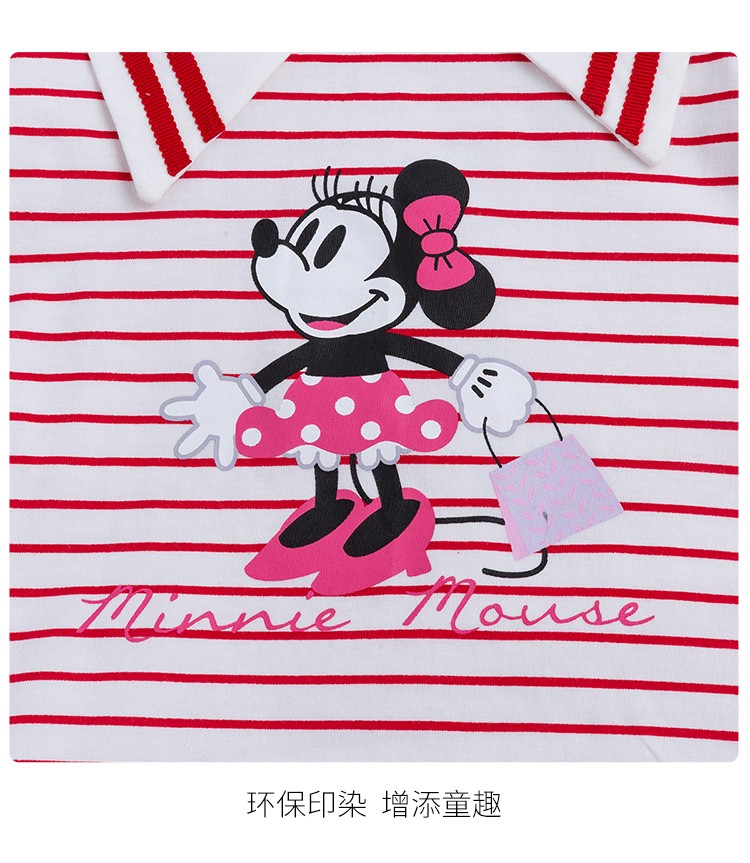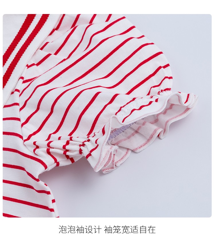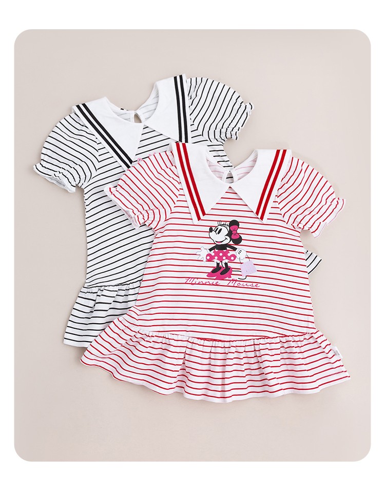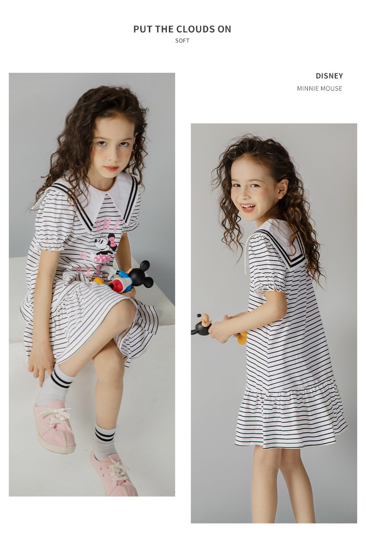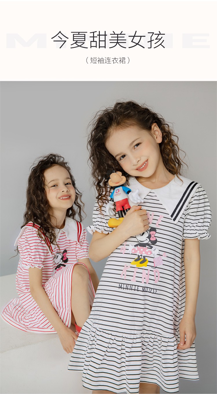 迪士尼新款短袖连衣裙海军风条纹休闲长裙