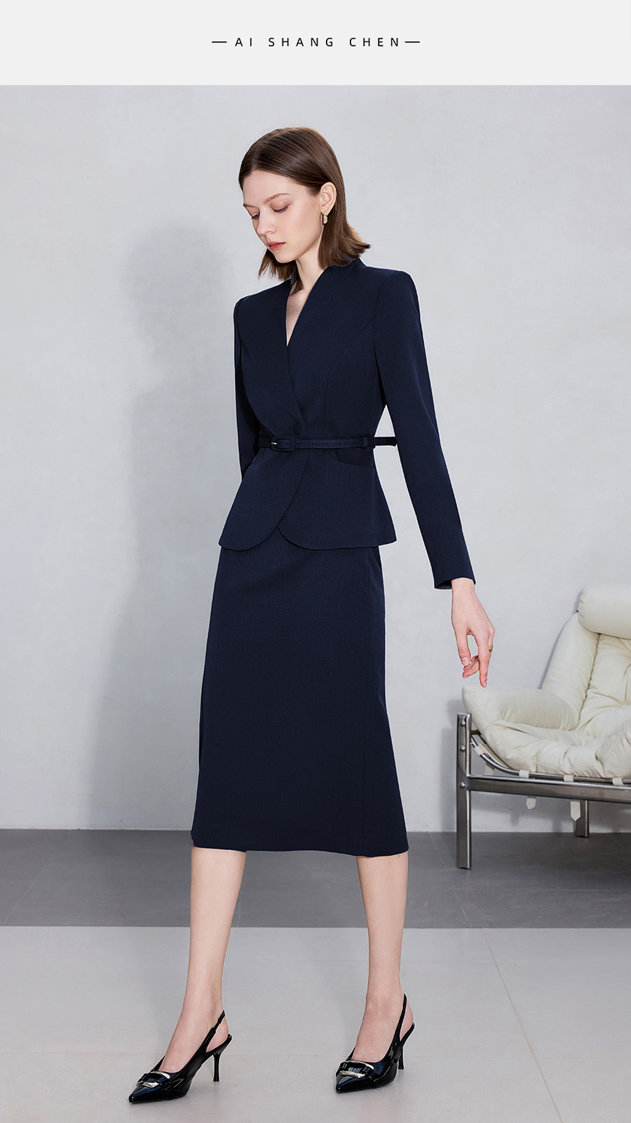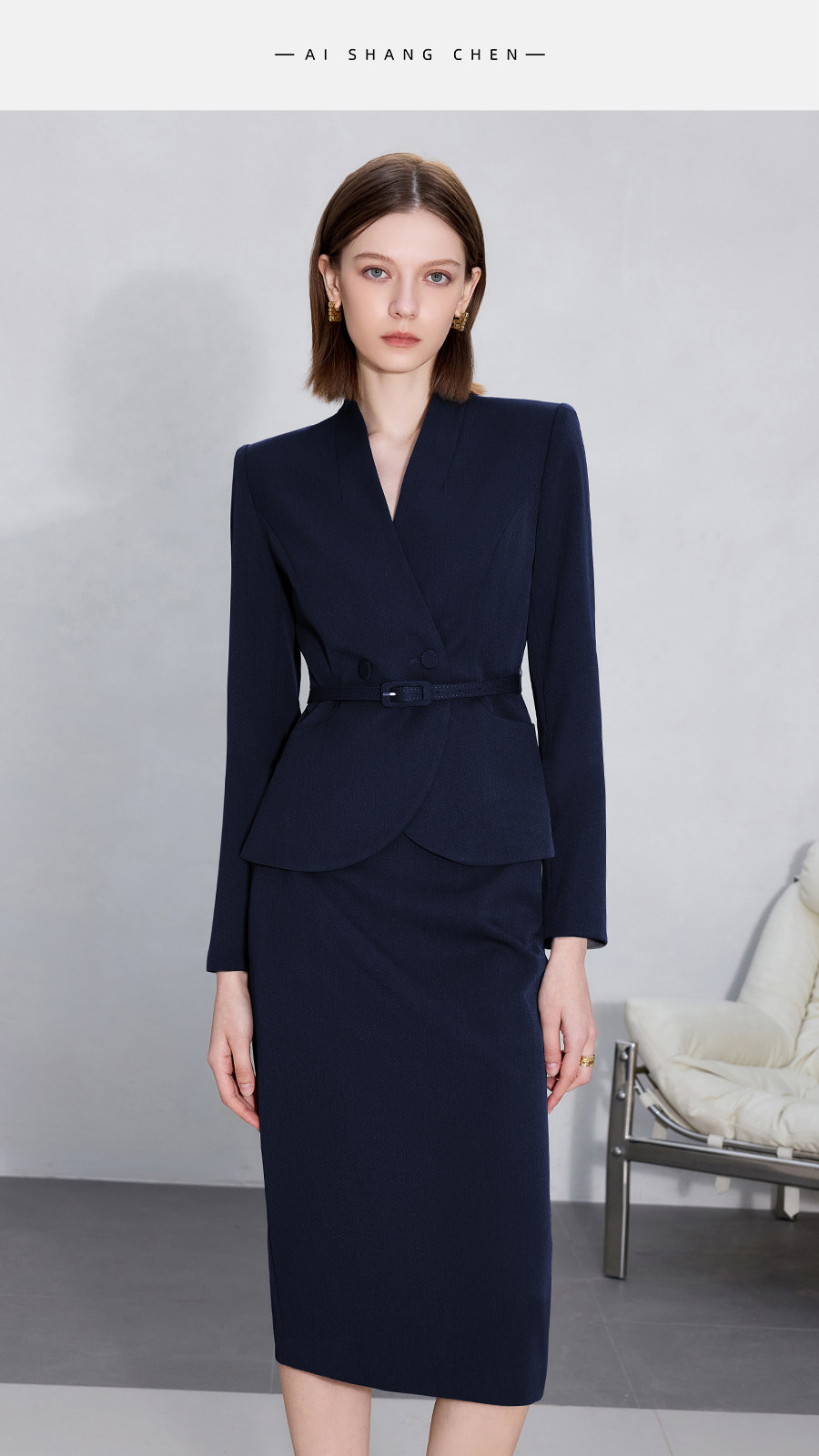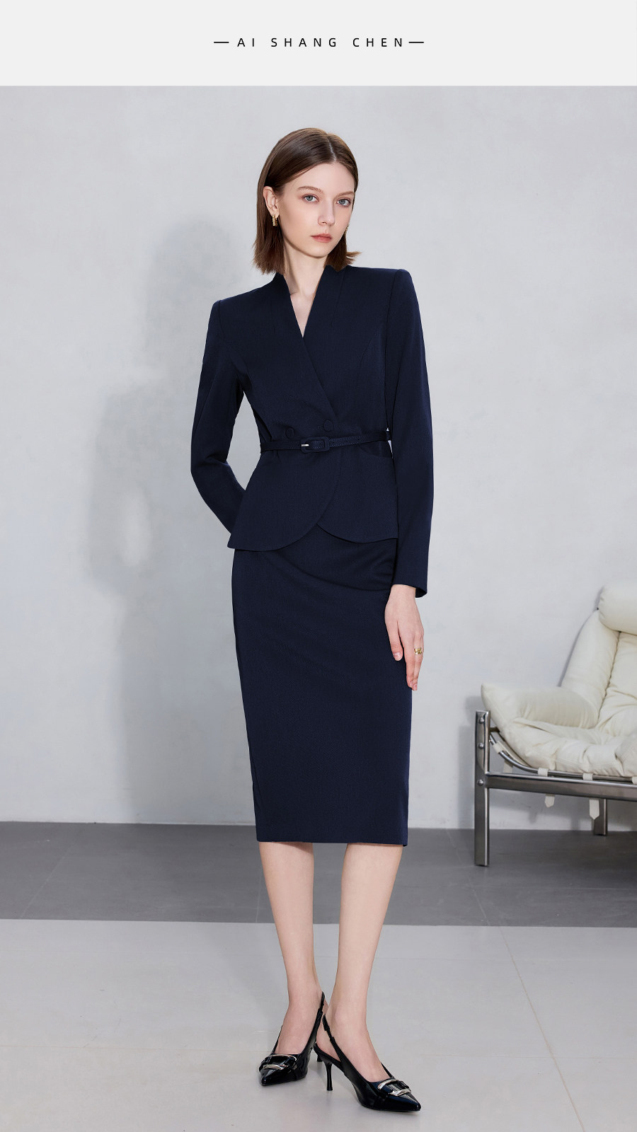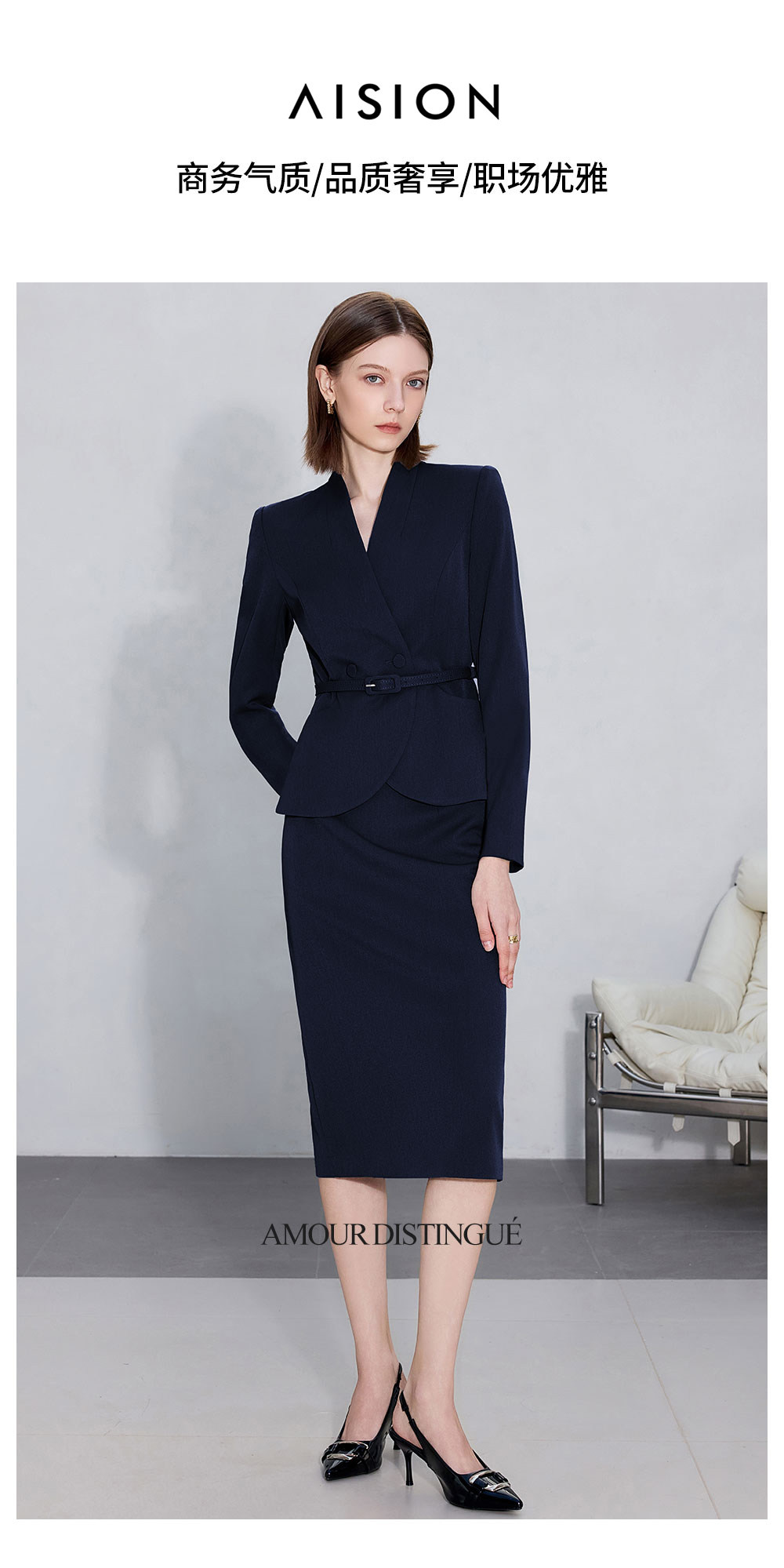 艾尚臣藏青色西装套裙女2026新款商务风长袖显瘦气质通勤ol职业装