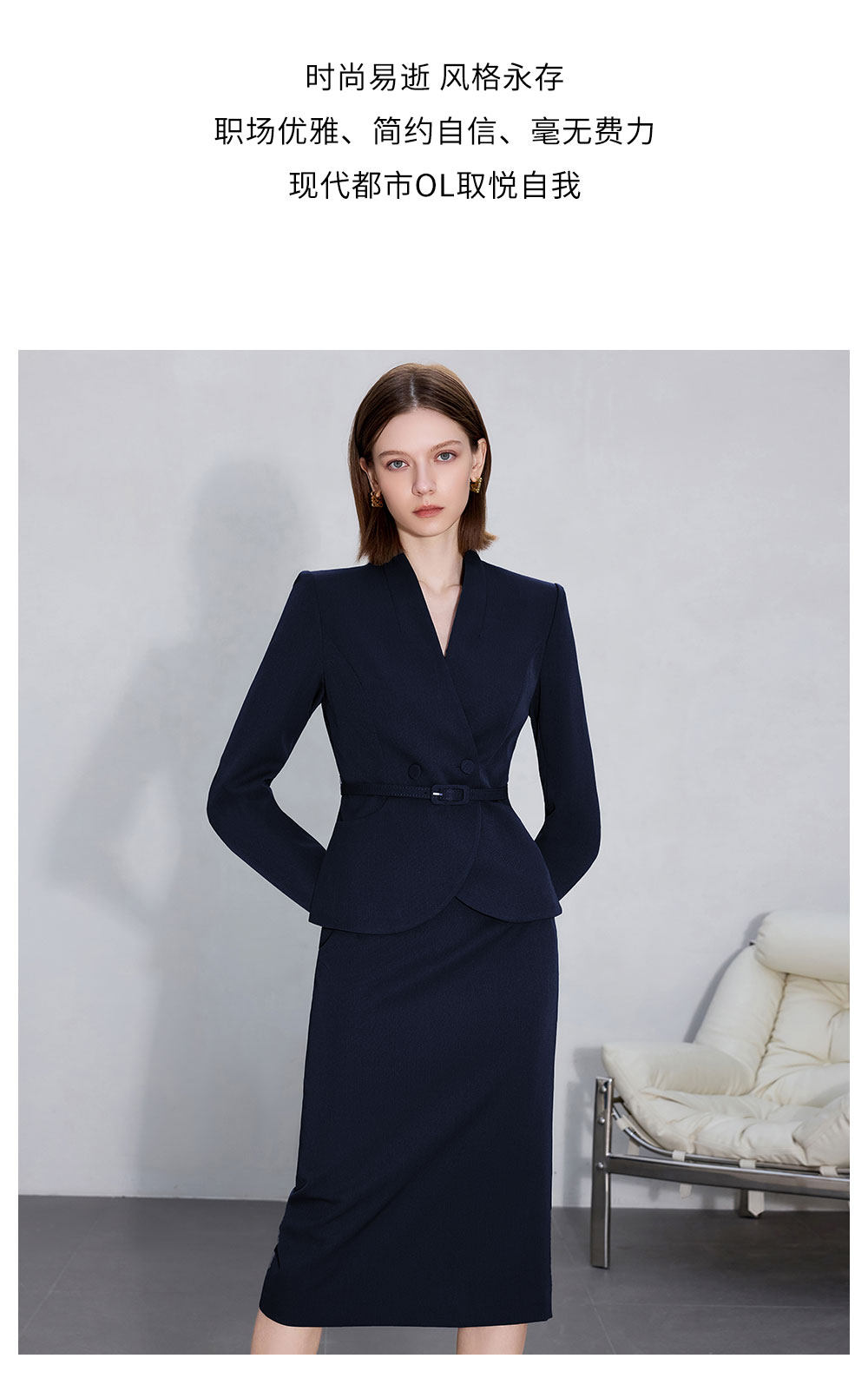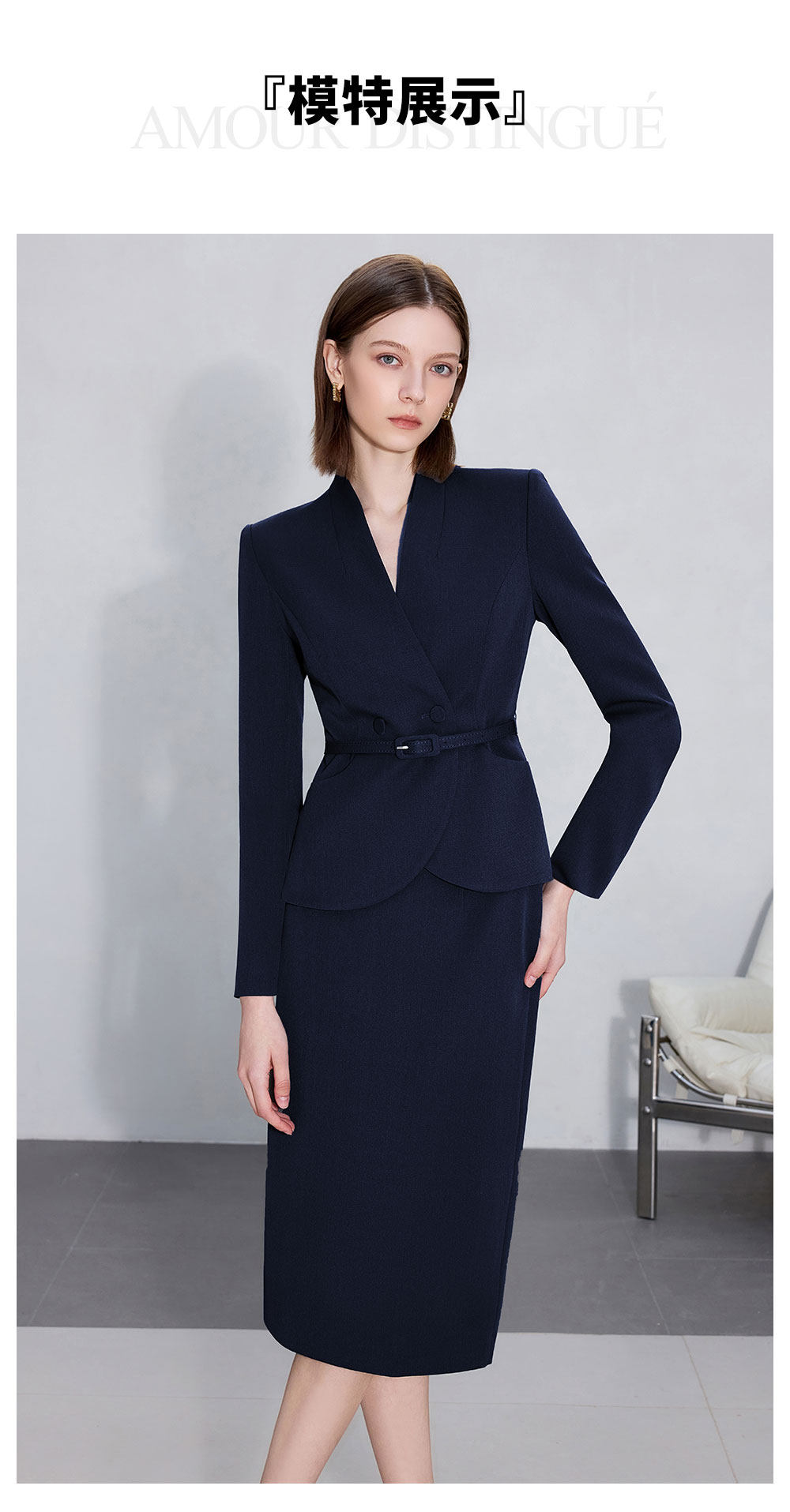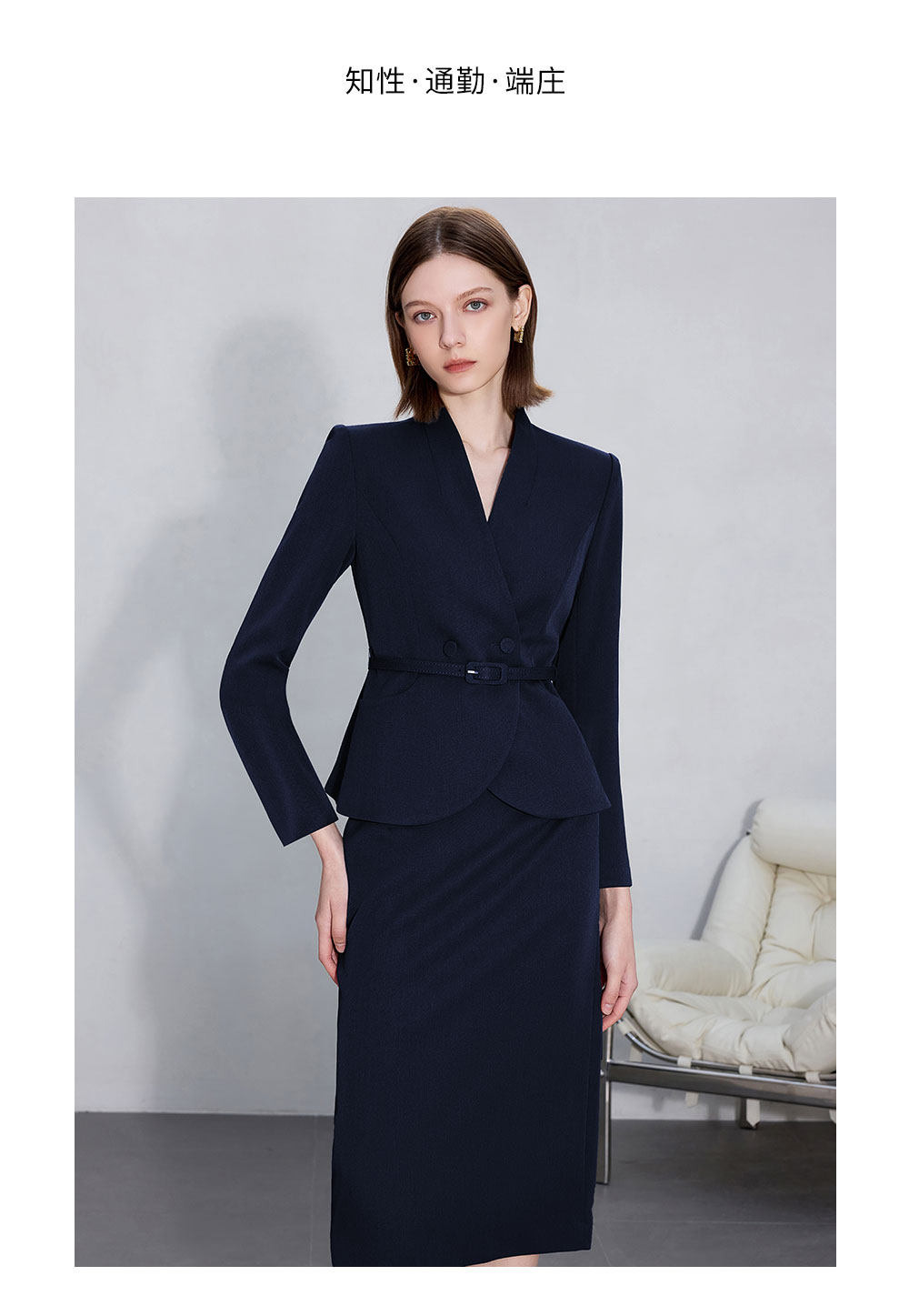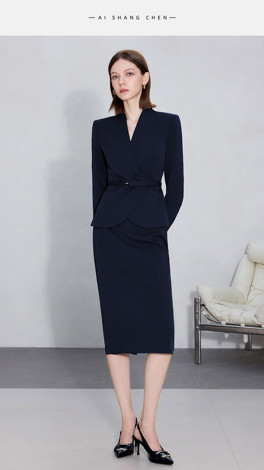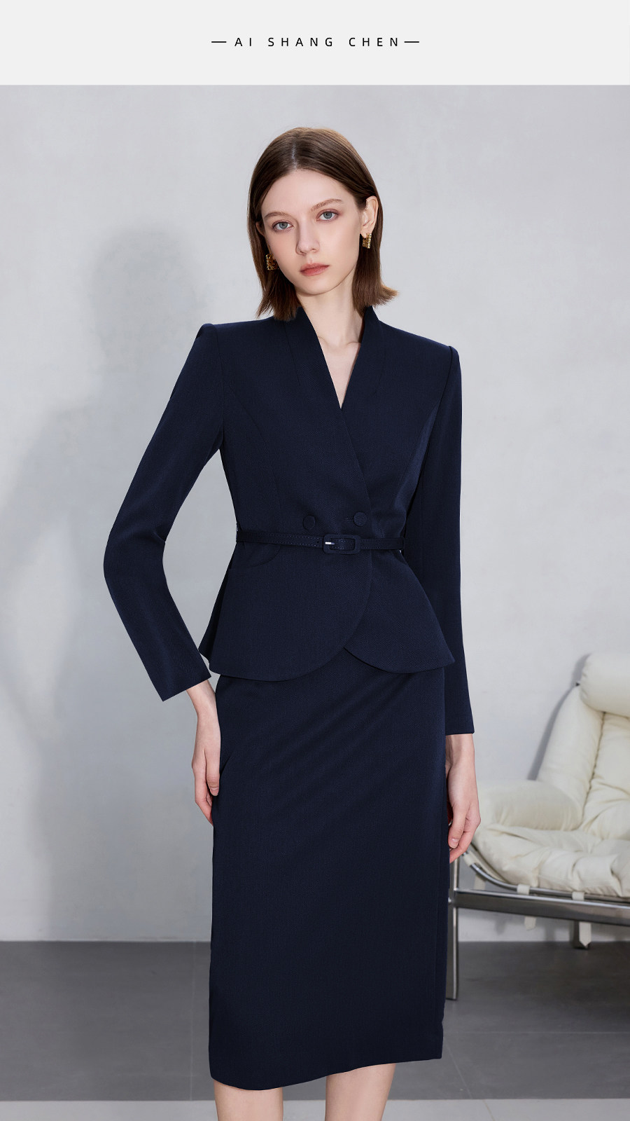 艾尚臣藏青色西装套裙女2026新款商务风长袖显瘦气质通勤ol职业装