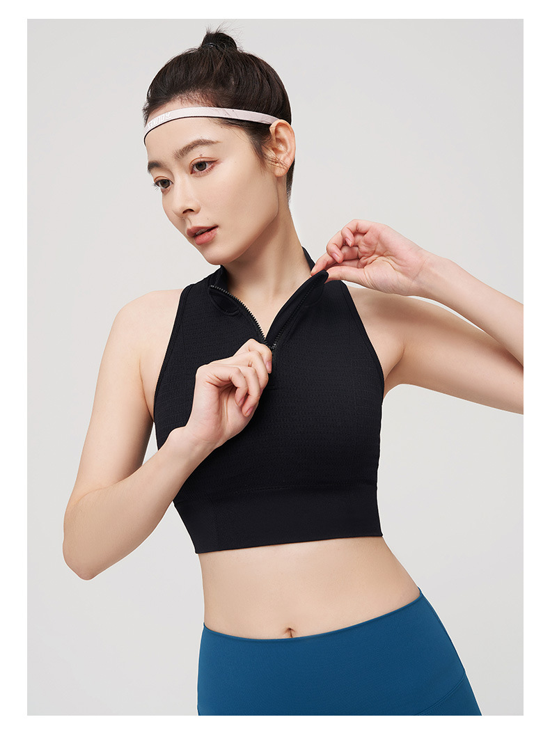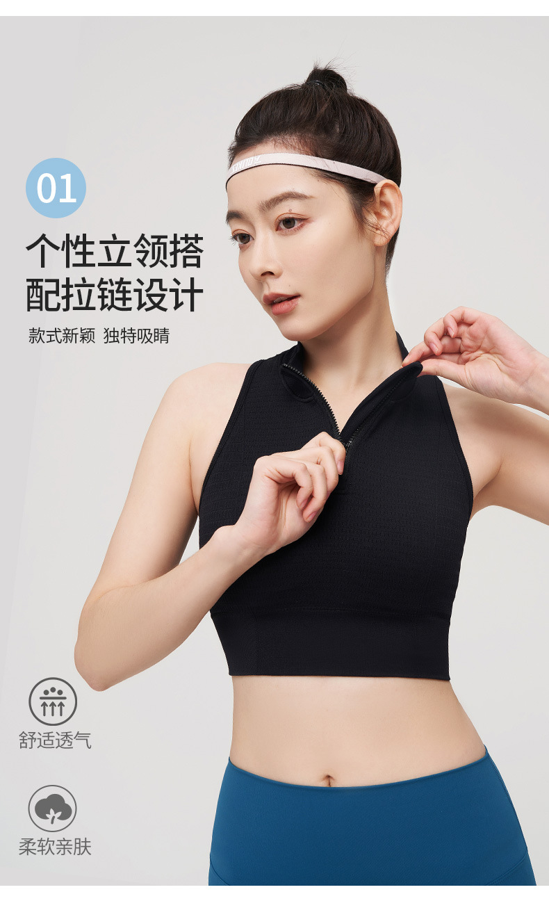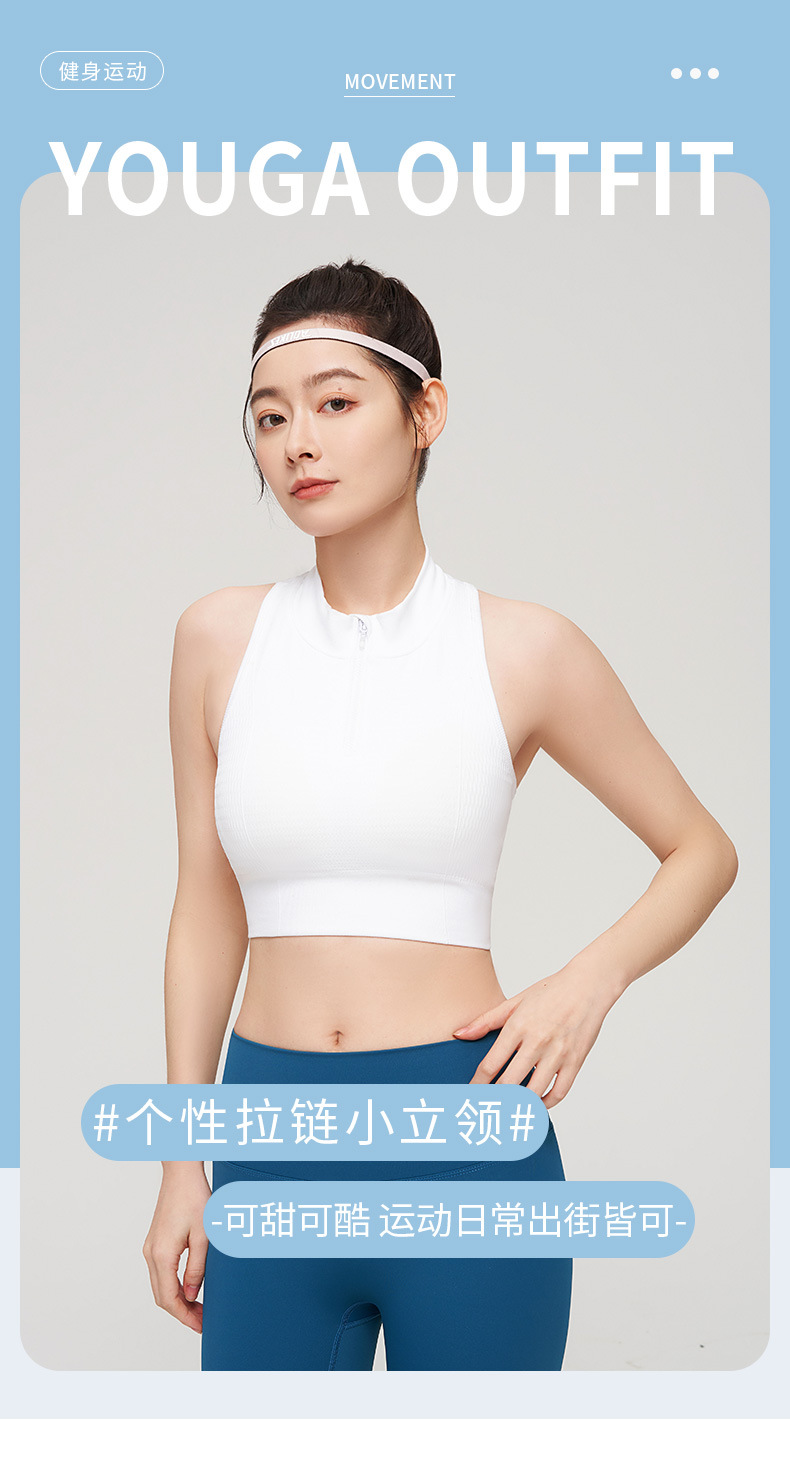 【路路精选】运动内衣一体杯固定前拉链防震高强度瑜伽背心速干女带胸垫瑜伽服