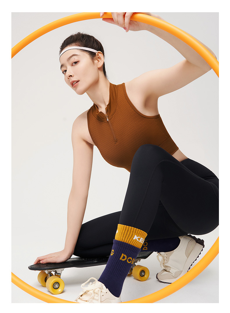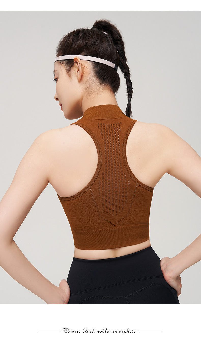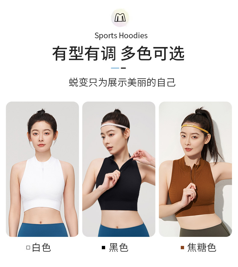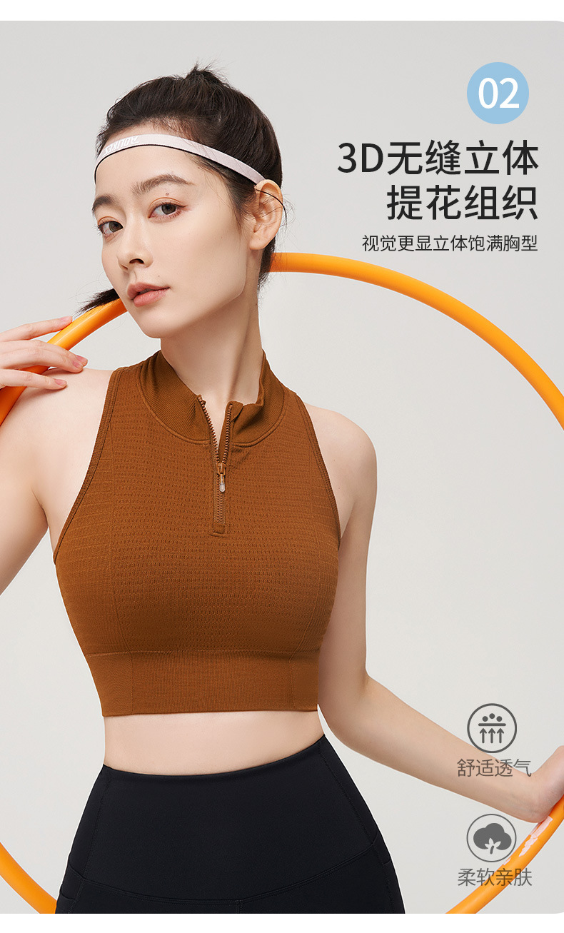 【路路精选】运动内衣一体杯固定前拉链防震高强度瑜伽背心速干女带胸垫瑜伽服
