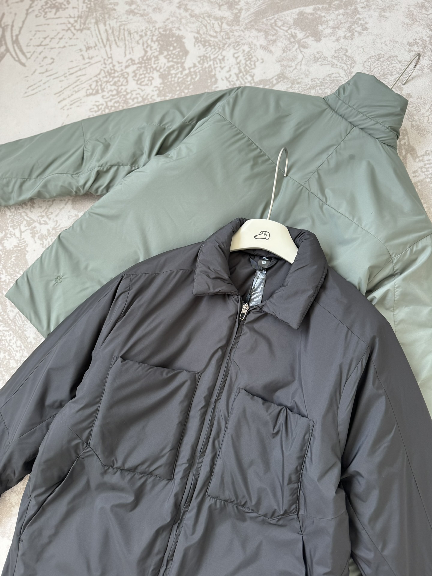 内里:这个不是羽绒棉、仿丝棉、更不是普通的棉花!而是【PRIMALOFT】高效保暖纤维!也就是户外圈常说的P棉,这是一种户外黑科技动态保暖纤维!是要超过羽绒的存在!!!具有超轻、高蓬、拒水、排湿、保暖的特性!很多户外防寒服,用的就是这种材料填充的!醉早由美国陆军山姆大叔向各大厂商招标需要生产一种类似羽绒的保暖材料,让军人在战场上不畏寒冷而又能够适应军人潮湿恶劣的服装使用保养环境至此!它是将超细中空纤维的合成盘绕在粗中空纤维上~组成的类似羽绒的树状结构!及细、及复杂的中空结构,有着数量超多、比水分子团还小的气室能够锁住更多的热量,带给你十足的保暖享受!又有着先天的拒水性,即使是潮湿状态下,仍旧有着高度的保暖效果!这种特性,是羽绒无法替代的!所以说它比羽绒还要保暖,真的不是夸张!而且也不会像羽绒服那样娇贵,无需特意送去干洗可机洗,更没有钻毛、跑毛、臃肿等烦恼,更加保暖易打理!3D动态式立体剪裁!微阔直筒的穿着效果,灵活自在不拘束,显瘦遮肉效果好!肩袖一片式贯穿形成连肩袖效果!穿着线条更加自然流畅,摆臂伸展更自在!肘部对角拼接+半打褶掐线,突出立体造型!不管是带来的活动协调性还是凸显多层次的线条感,都要比常规棉服好看、好穿很多!整个填充非常的均匀、饱满,不放过任何死角!你们可以看到,包括领片和胸袋都是鼓鼓囊囊的!丝毫不显扁平软榻,廓形更加突出!胸前大号的单切角外贴口袋,隐藏树脂四合扣闭合!两侧斜插,隐藏式拉链口袋,插手储物兼顾!袖口也是一样的树脂四合扣,可调节设计,提升多样化的穿着细节,提升实用性!门襟处双重压边线,既能起到隐藏效果,也能防止漏风!袖口+后摆刺绣点缀,而且都是高标准的精密定位机绣!原版一致的自锁扣拉链,顺滑耐用,稳定不易滑脱!里里外外细节走线都很精准牢固,笔直整齐!多处压力点,还做了套结、匝线加固,提升耐久度!!!军绿+黑,精选两色,男女都可以穿!这一件南方可过冬的级别,偏北方,也可作为冲锋衣、软壳的中间保暖层!总而言之,一万个推荐!!!