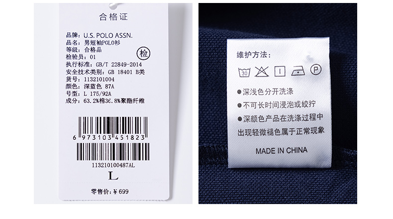 5楼 U.S.POLO.ASSN 男短袖翻领冰丝薄款POLO衫JH 1132101004 原价699 现价179