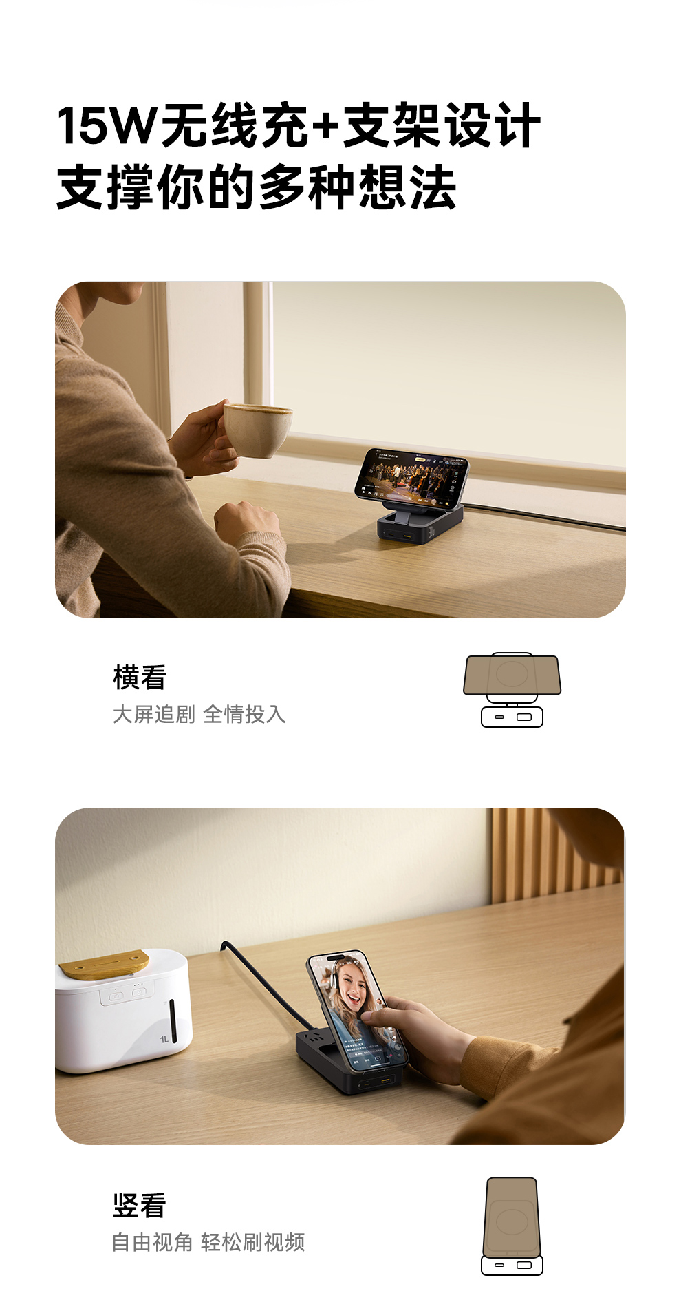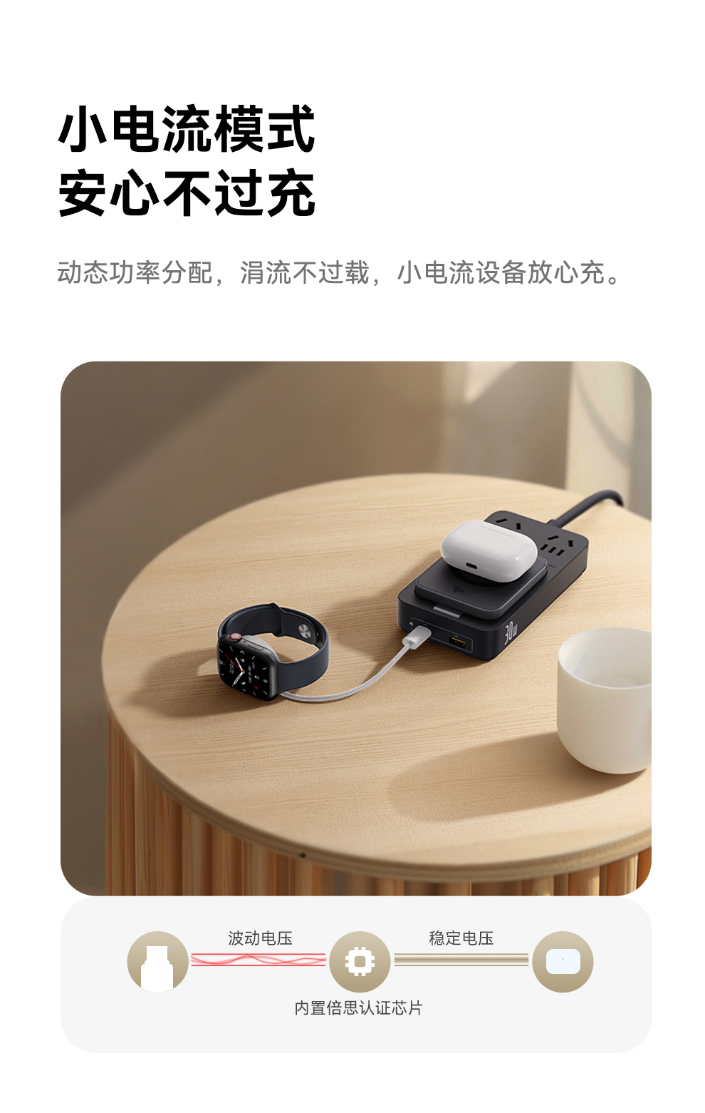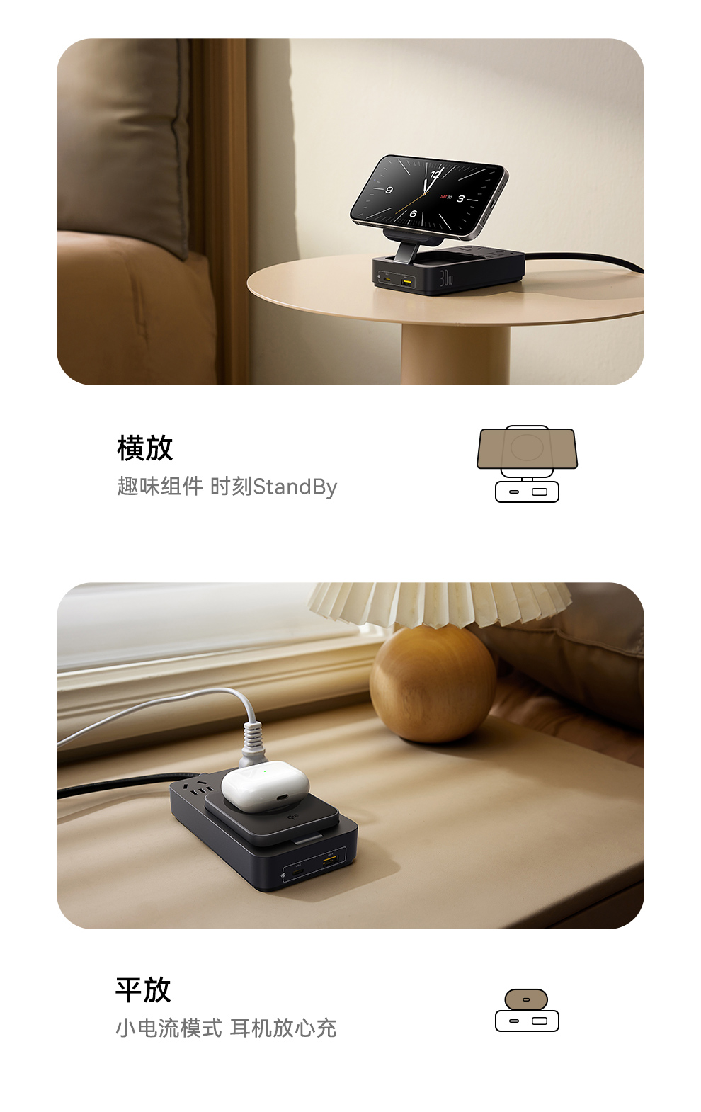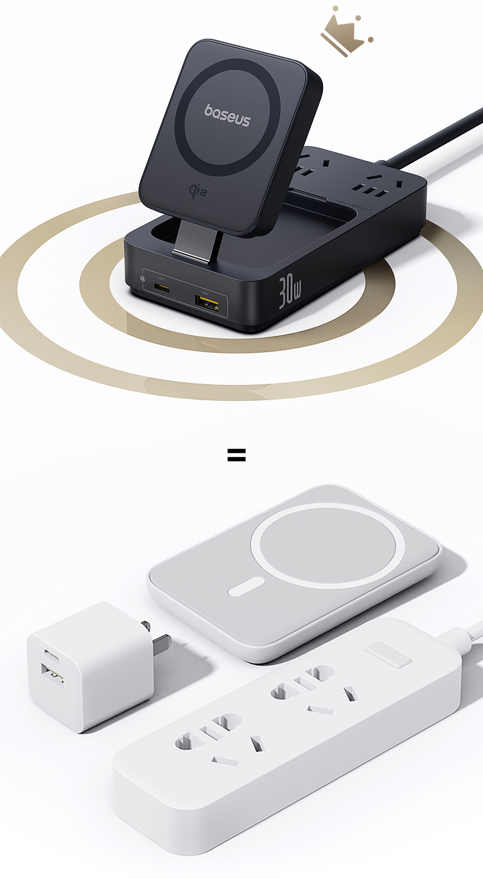 倍思 灵傲Mini系列 快充插线板 2AC+1U+1C+磁吸无线充 30W