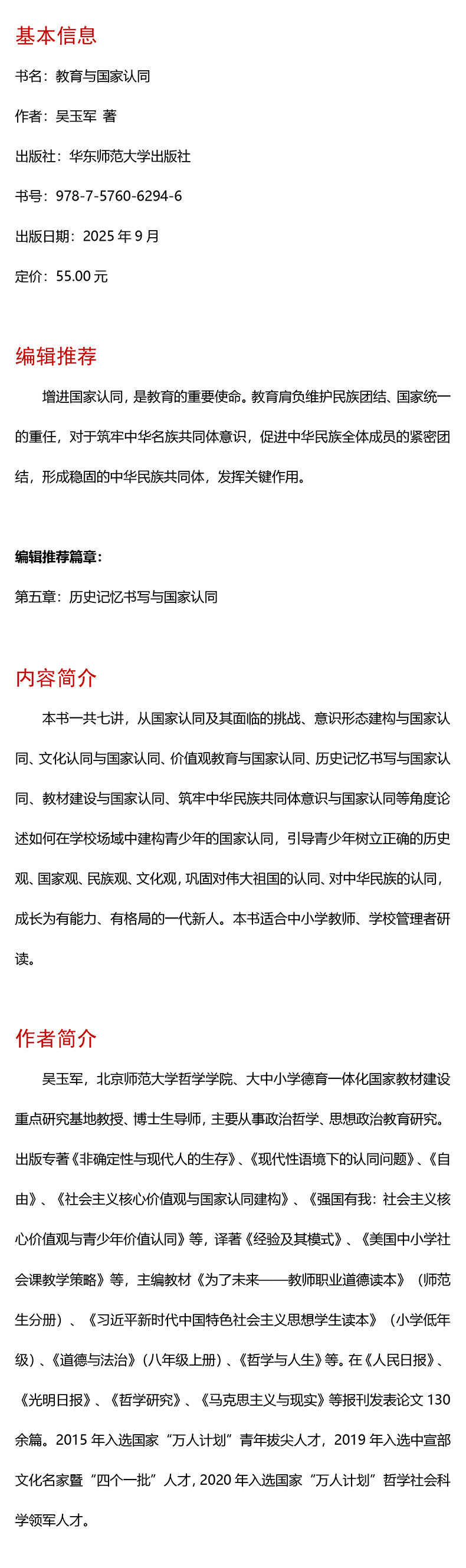 教育与国家认同 大夏书系 教育新思考 吴玉军 教育的重要使命