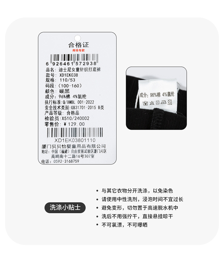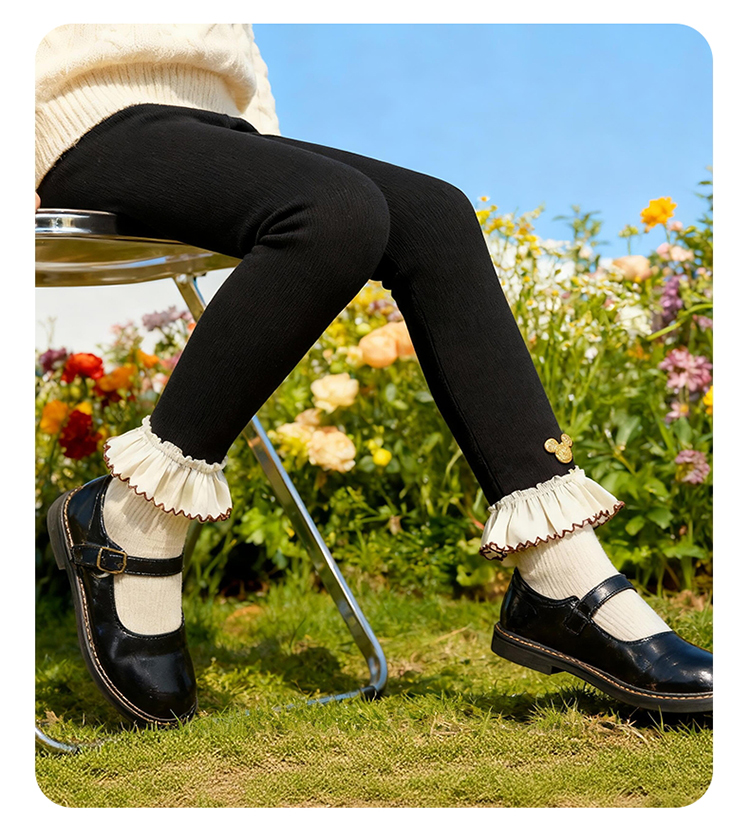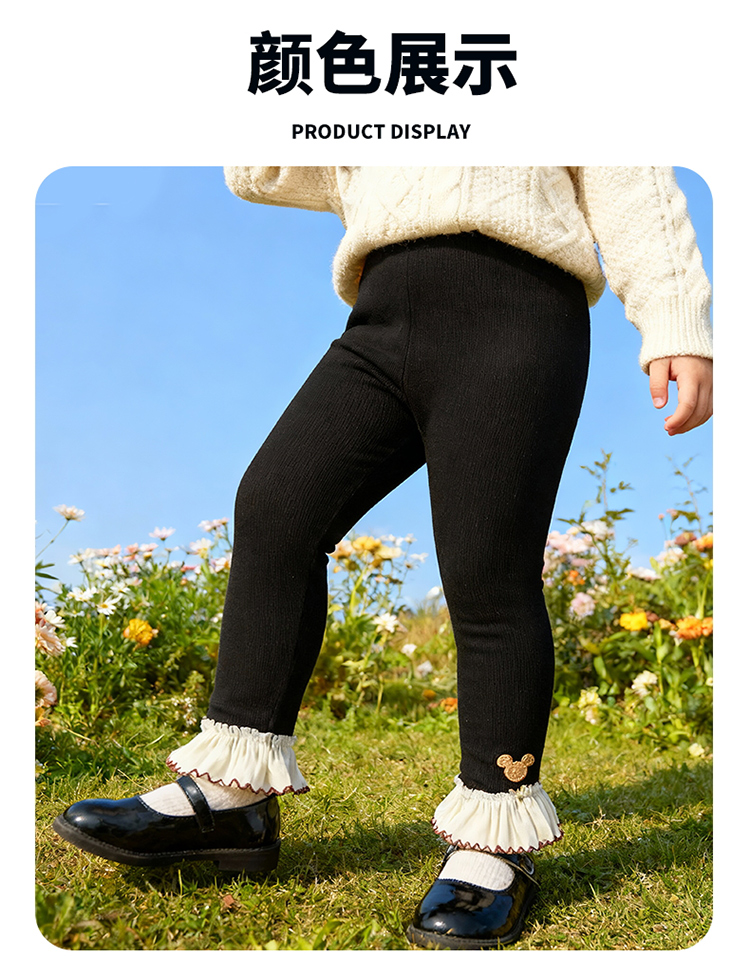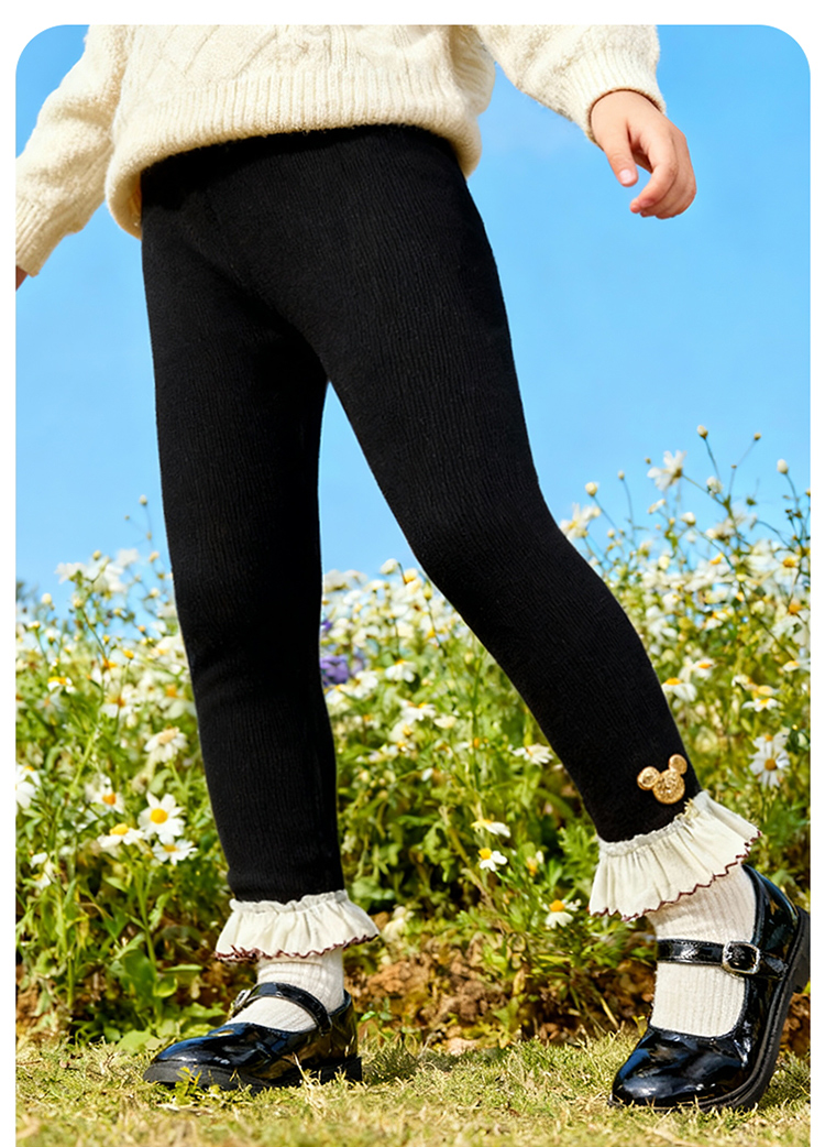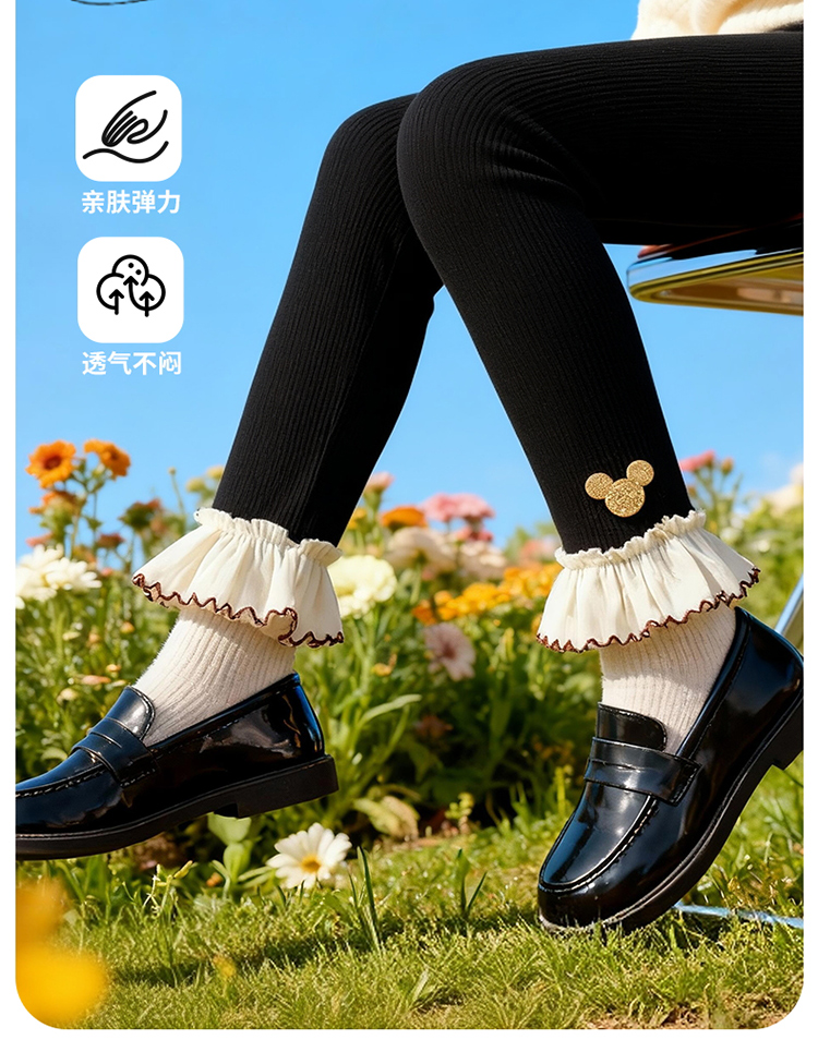 迪士尼米妮撞色打底裤春秋新款女童亲肤高弹休闲裤中大童修身打底裤