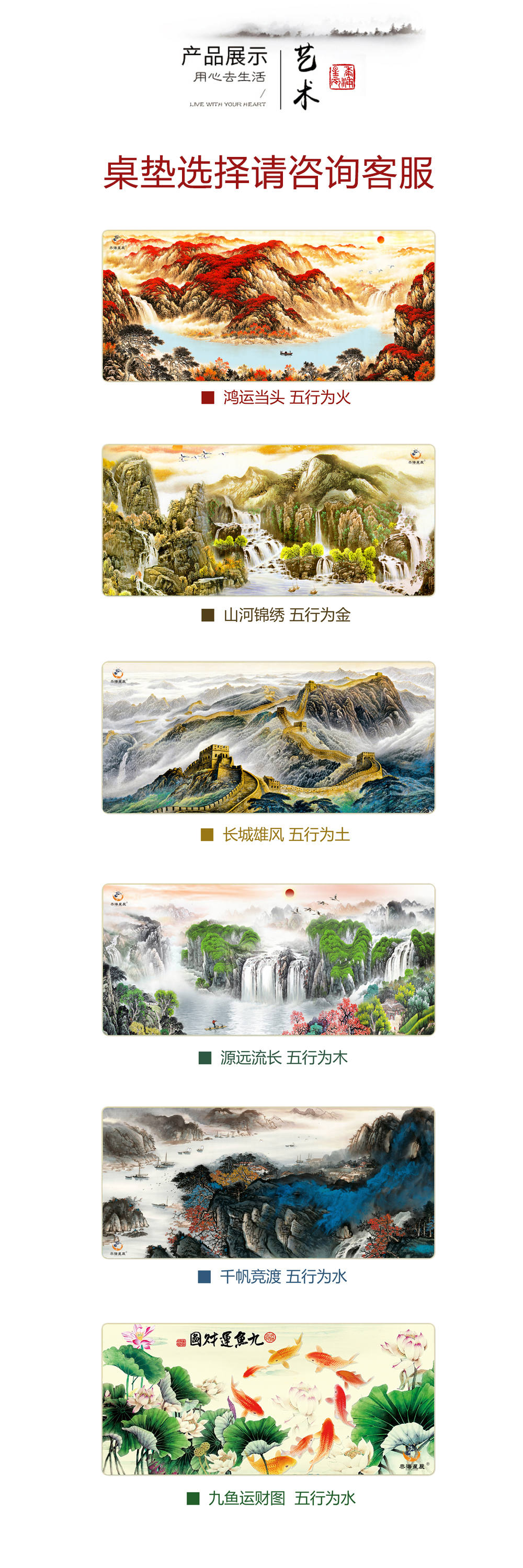 黍海星辰系列吉祥桌垫 古风艺术气派恢弘 国画山水画办公桌垫 茶台垫