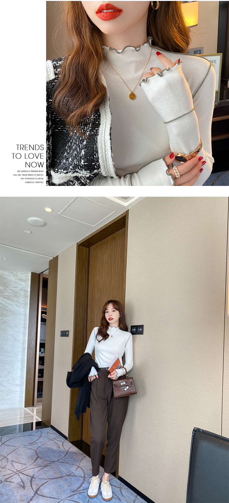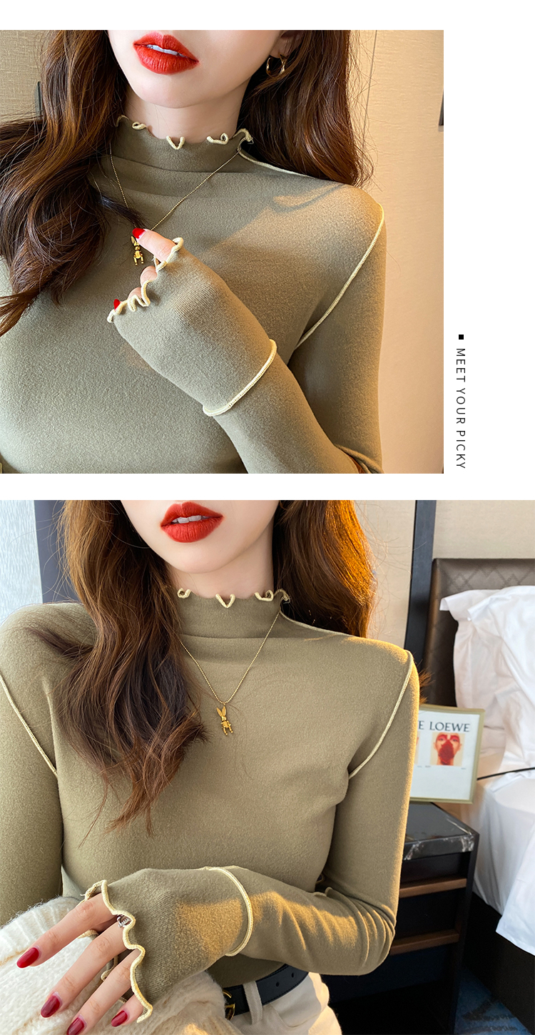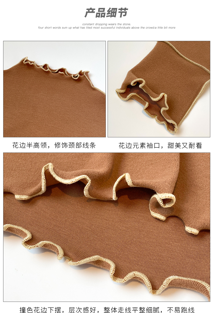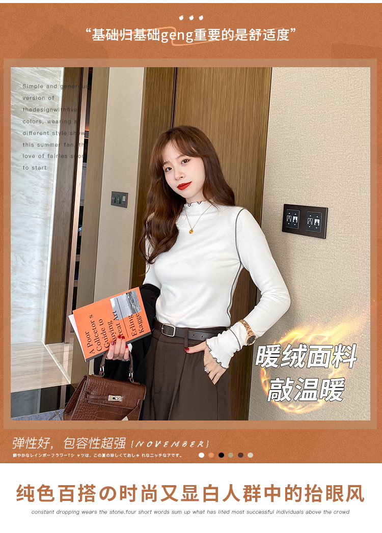 【秋冬百搭时尚】木耳边撞色打底衫半高领 双面德绒面料 双面可穿 内搭上衣女秋冬保暖显瘦纯色打底