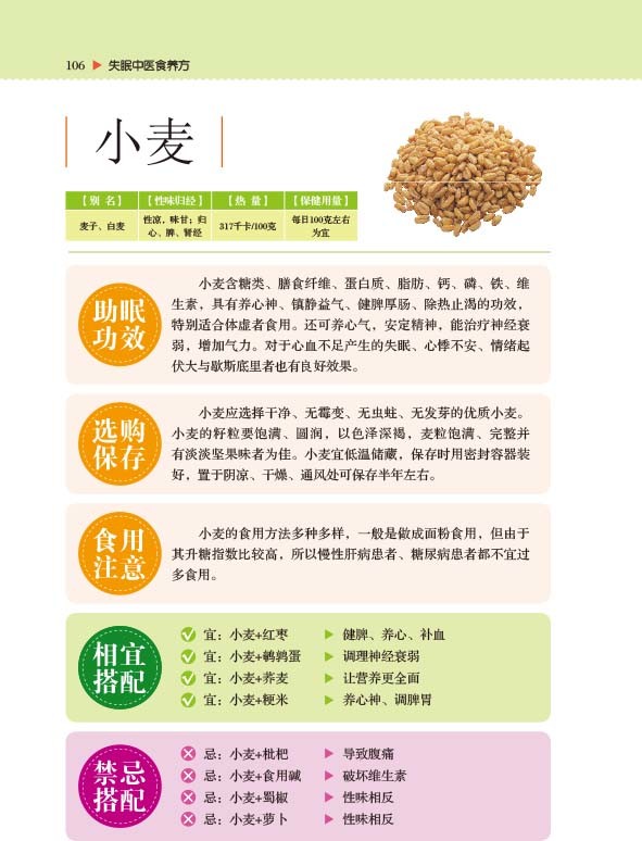 柴瑞震主编的《失眠中医食养方》共分为六部分,部分主要介绍什么是失眠、导致失眠的原因及失眠的症状等内容;第二部分是从西医的角度介绍了因不同的原因引发的16种失眠,方便患者辨清自己属于哪种失眠,对症食疗;第三部分是从中医的角度介绍了9种类型的失眠;第四部分精选了48种助眠食材,并全面介绍每种食材的性味归经、助眠功效、选购保存、食用注意以及禁忌搭配等内容,方便读者使用;第五部分列举了20种助眠中药材,全面介绍了每种中药材的用法用量、助眠功效、配伍、食用禁忌及家庭保健用法等内容;《失眠中医食养方》第六部分介绍了50种会加重失眠的食材、药材,提醒广大失眠患者远离这些食材、药材。