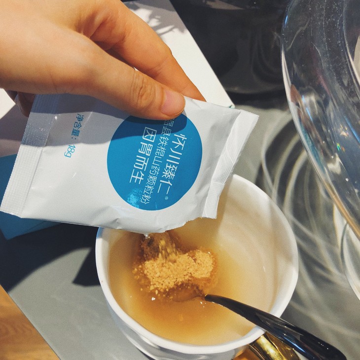 我现在虽然还是每天外卖,但都会精心挑选,吃得还是很健康的。基本上选橄榄油核桃油烹调的简单均衡饮食,还把精面换成了粗粮。就是早饭,真的有点小艰难。面包甜的,怕胖,牛奶怕长痘,银耳又坚持不了每天煮,吃太正等11点半陆老师回来中饭又吃不下了。后来在选线下店零食时试到这款山药粉,就觉得可以定下来了,早餐就它啦!加一个苹果刚刚好!