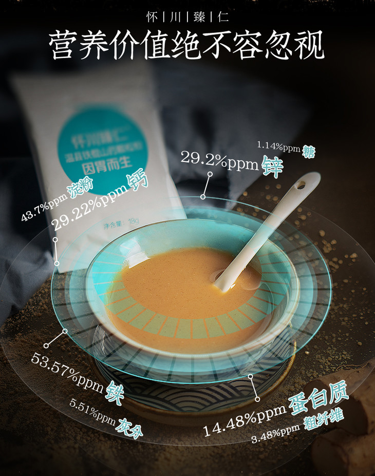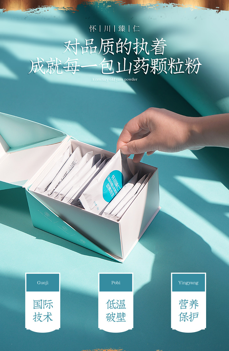 这款山药粉更是很厉害了,原料用的是河南温县的铁棍山药,去菜场问问就知道,铁棍山药几乎可以说是山药里很好的一种了!口感绵密、营养价值高,这个山药粉就是用铁棍山药磨出来的。从挑选原材料——切片——烘干——焙炒——细胞破壁等一系列过程,形成山药熟粉,用≥80℃的开水冲泡,就可以直接饮用。简单方便,营养丰富易吸收。