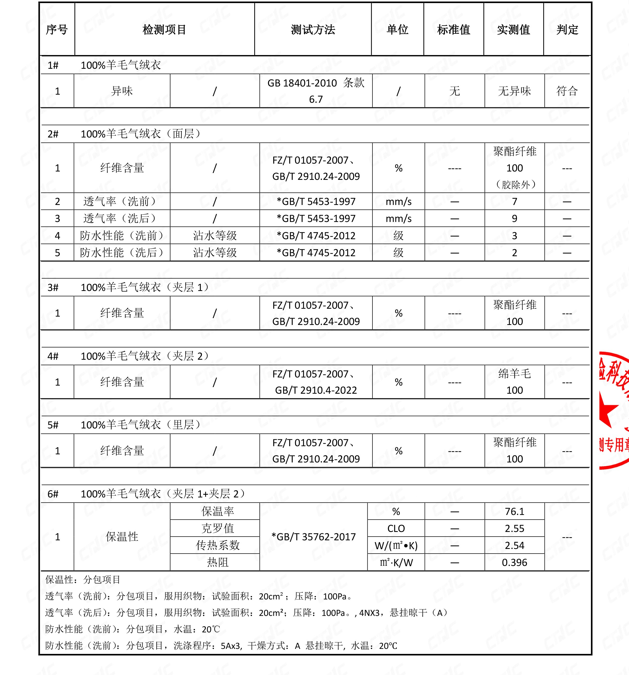 里层:聚脂纤维:100