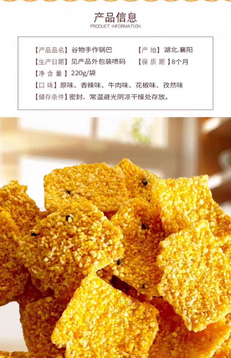 【休闲零食】楚老头手工谷物锅巴原味/香辣味/花椒味/牛肉味多口味可选 220g/袋
