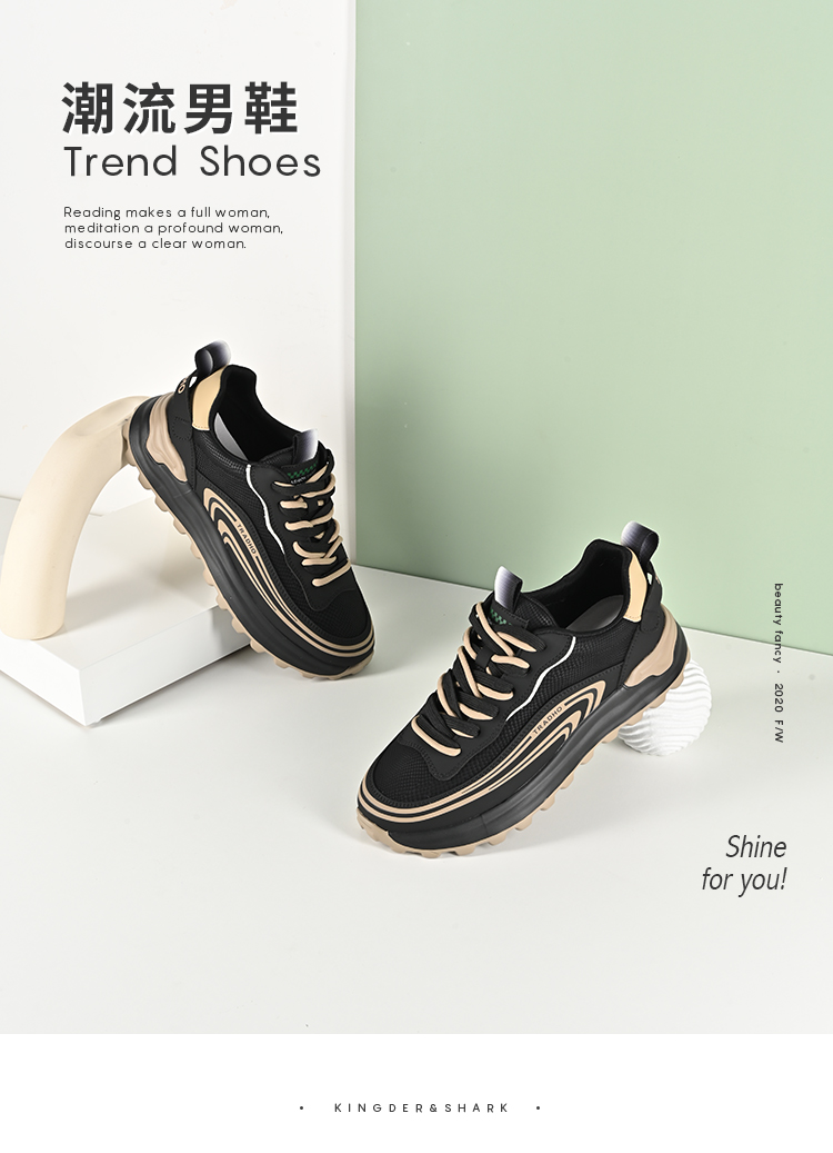 2024经典鲨春季男士新款休闲运动厚底老爹鞋KW222-D14031