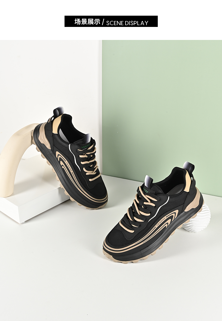 经典鲨2025夏季新品韩版时尚网状透气舒适潮酷系带显高老爹鞋女KW160-529171