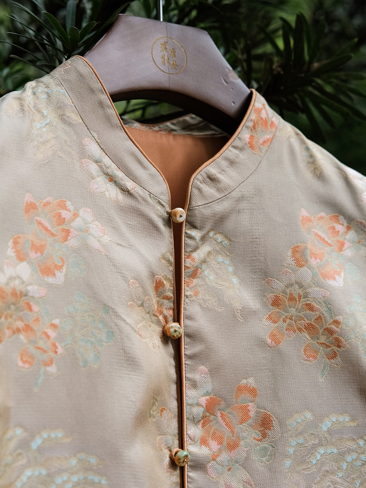 盛唐牡丹 | 时髦玉扣花香引蝶对襟女衬衫