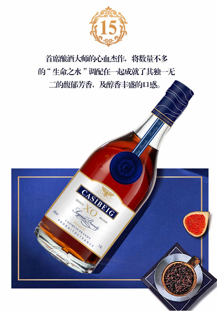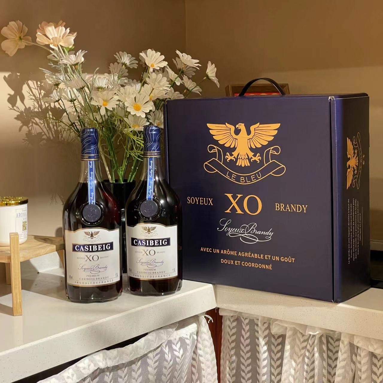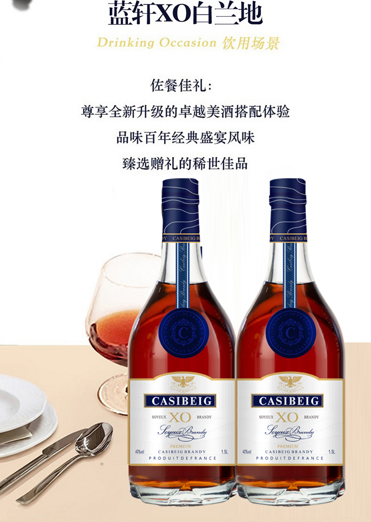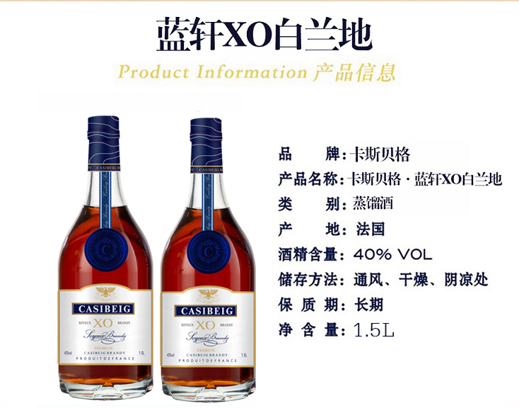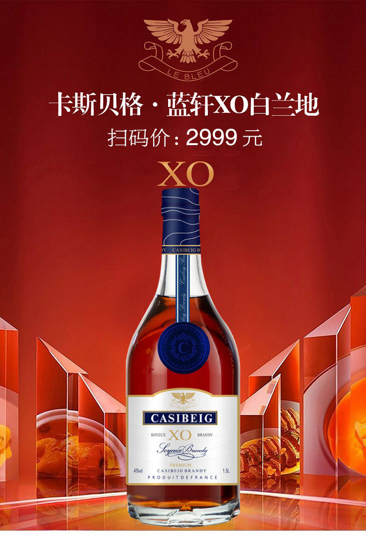 疯抢中!!【法国进口】卡斯贝格·蓝轩XO白兰地 1.5L大瓶装 赠高端礼盒+2个酒杯