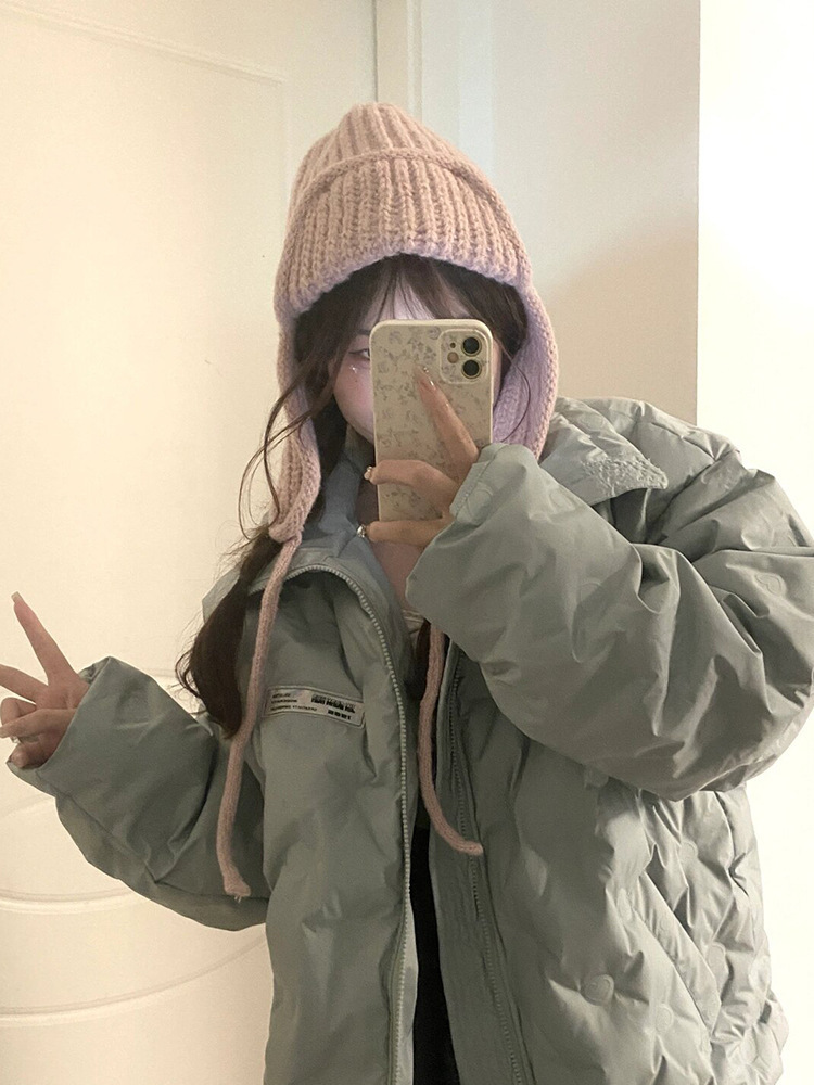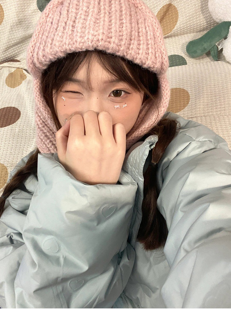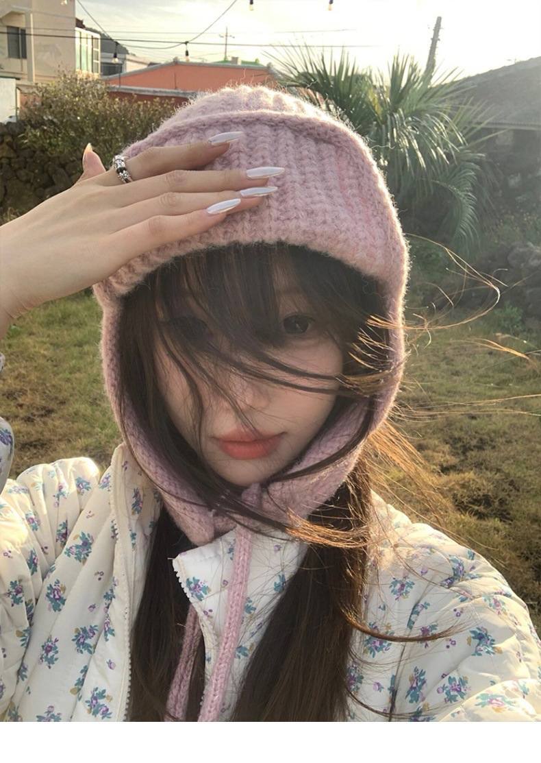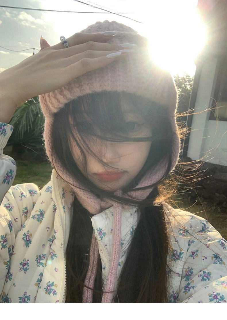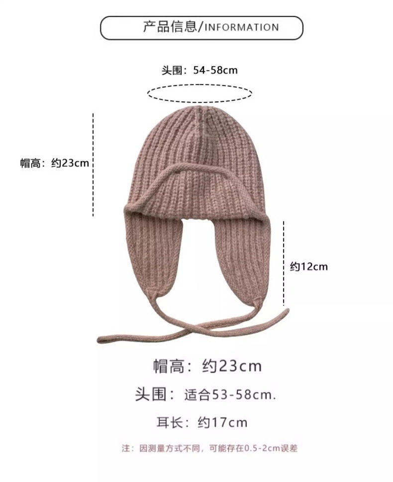 显脸小纯色系带针织毛线韩版出片神器飞行帽保暖护耳学生雷锋帽