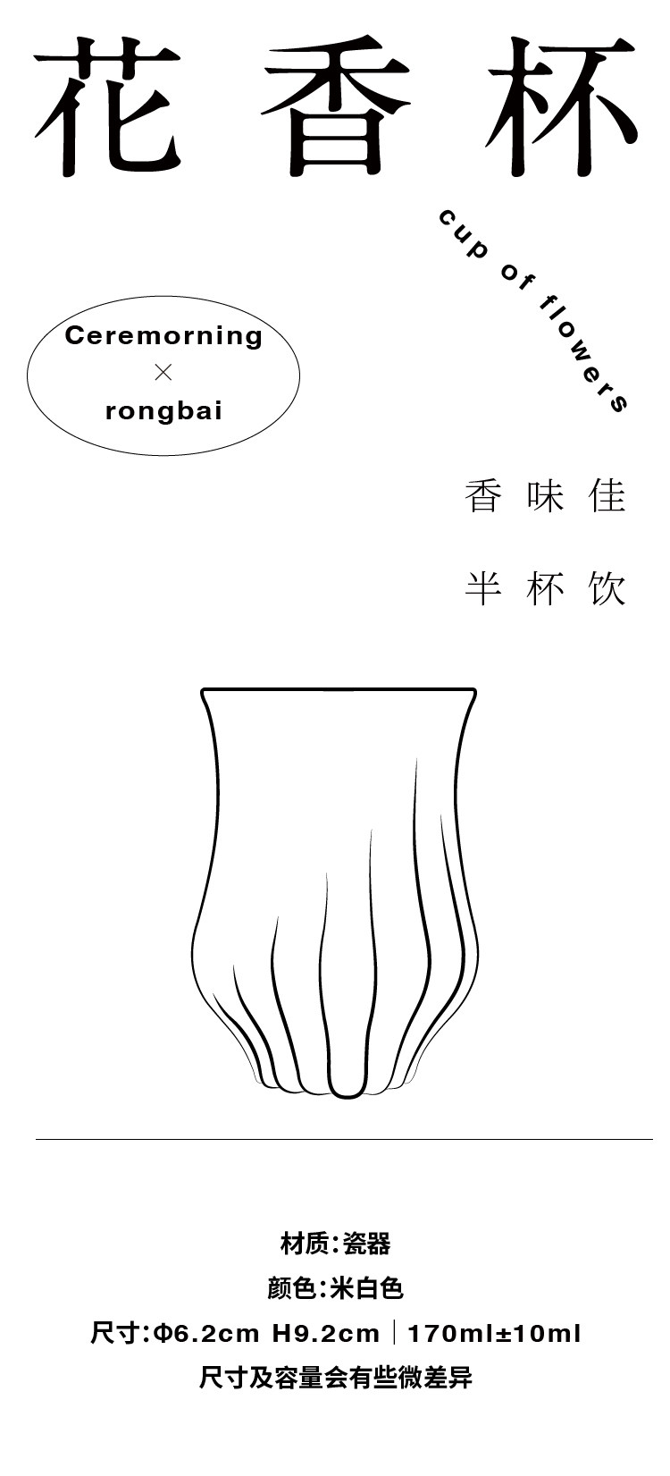 Ceremorningx融白 联名款花香杯 瓷泥米白釉闻香手冲咖啡中深美式