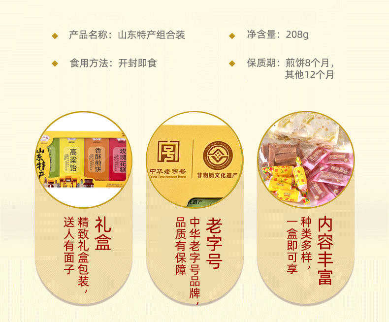 野风酥山东特产组合装208g正宗泰安泰山土特产零食小吃礼盒装过年送礼