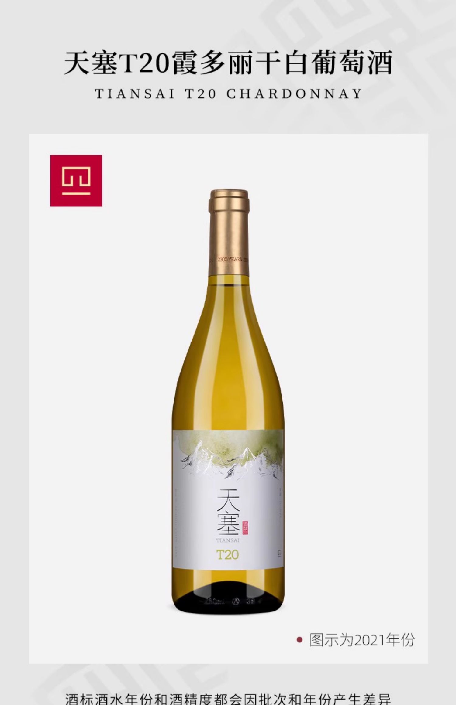新疆天塞酒庄T20 霞多丽干白葡萄酒