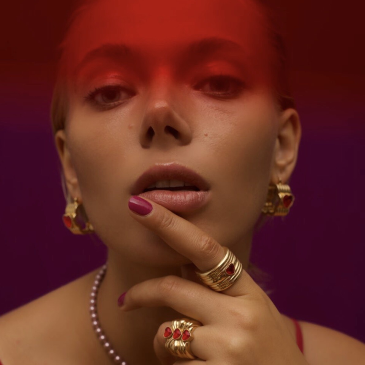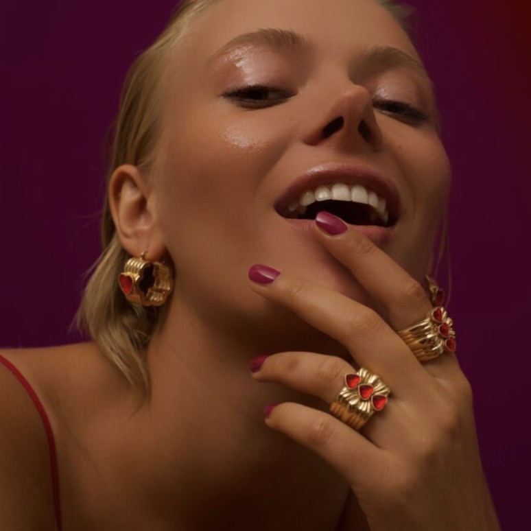 北京仓|Acchitto-DESI- 金色 红心水晶 耳环[意大利设计师]