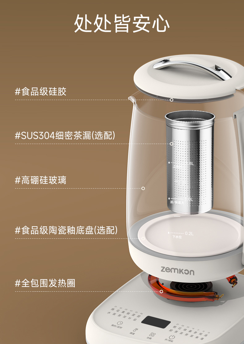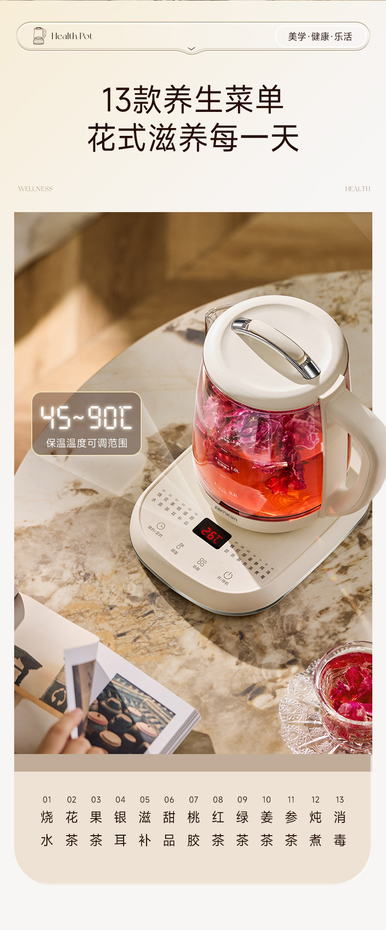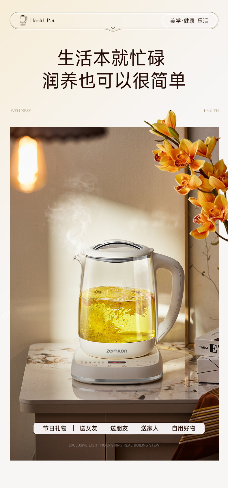 【大容量!轻音煮】多功能养生壶家用煮茶壶全自动办公室1.8L花茶烧水壶。ry