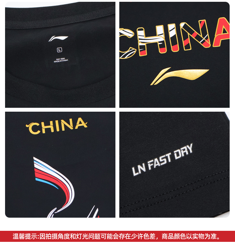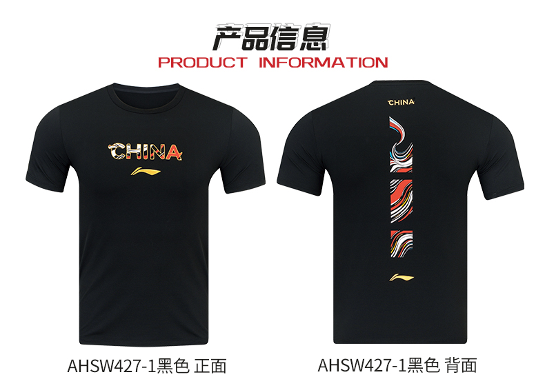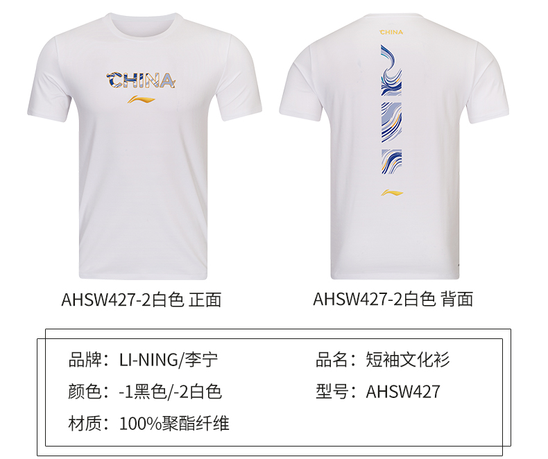 李宁羽毛球服日常训练短袖马年文化衫AHSW427吸汗文化衫