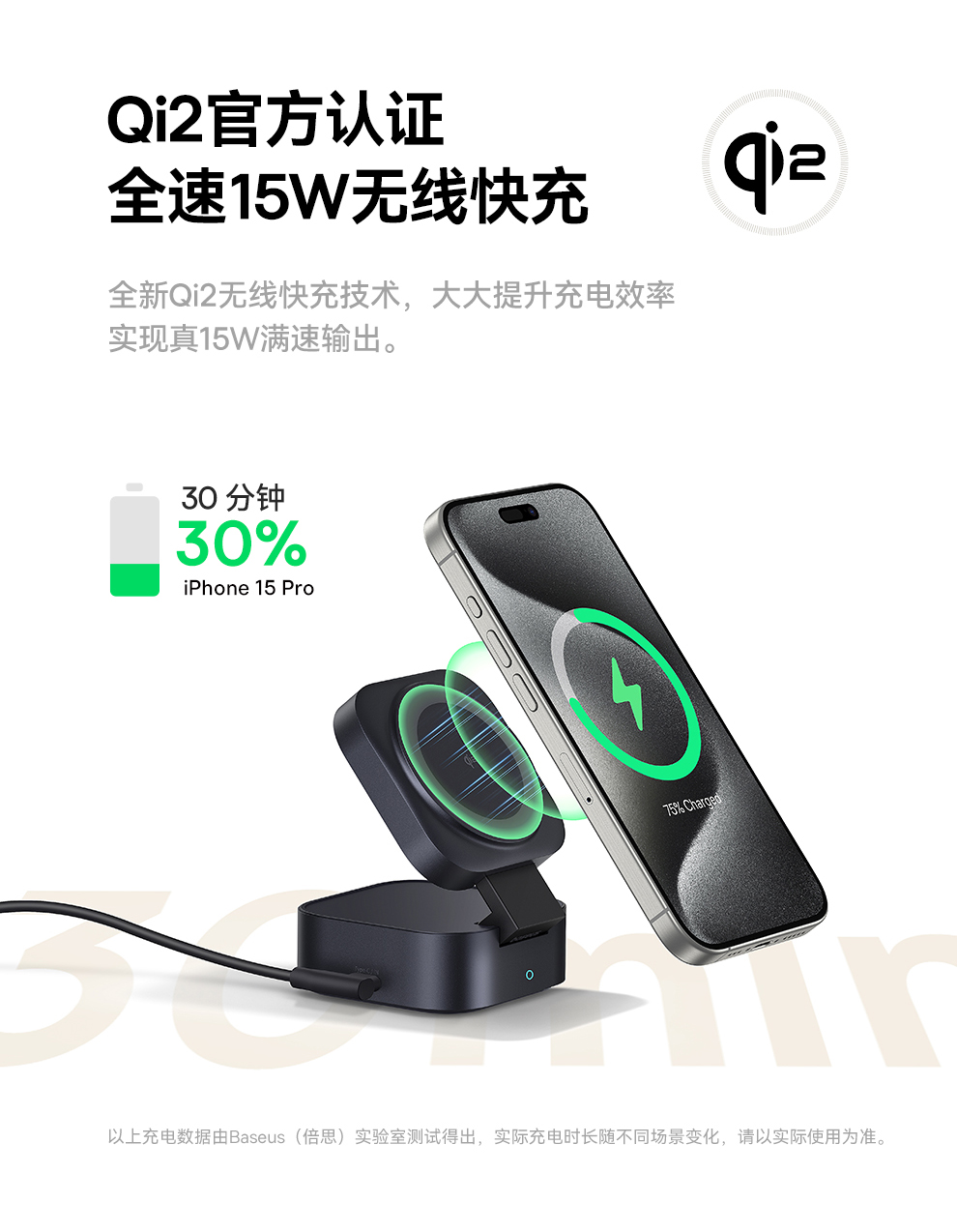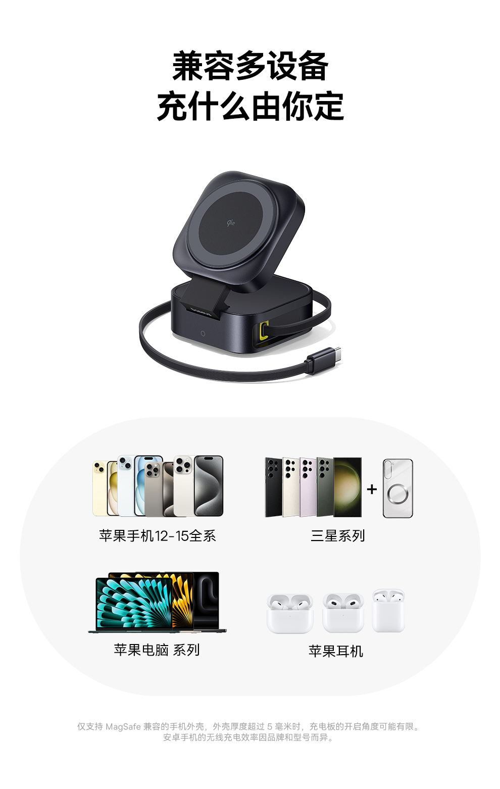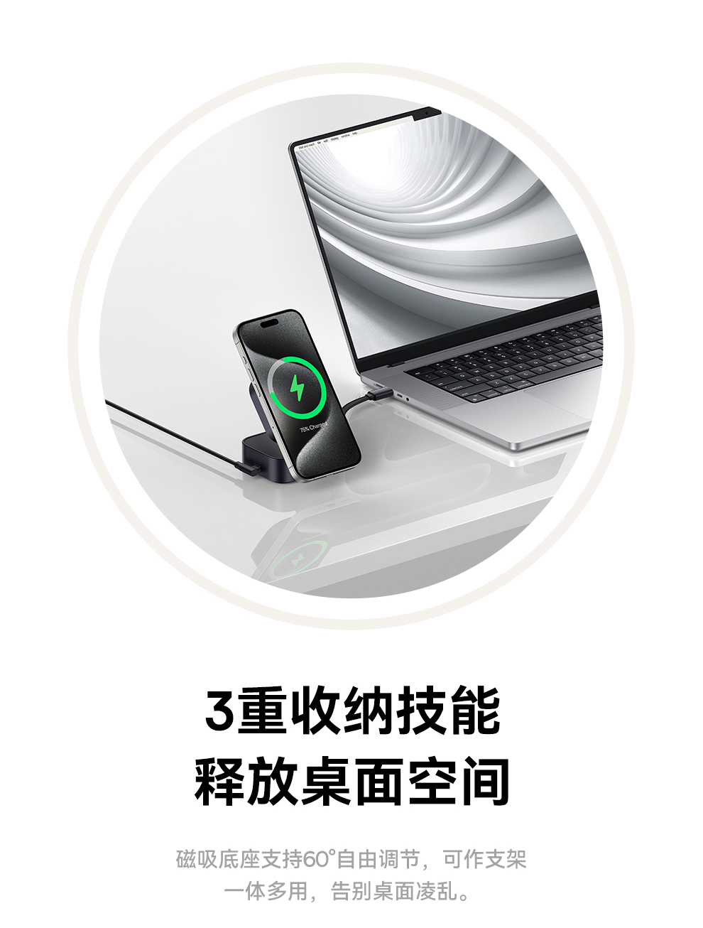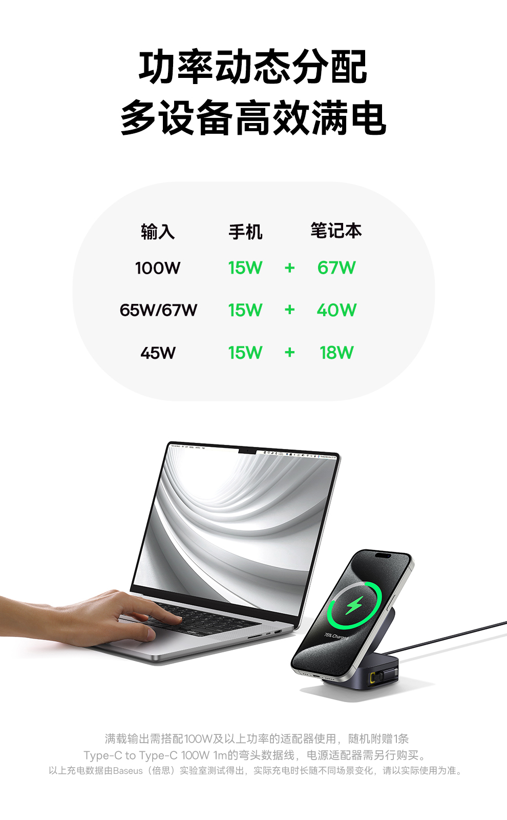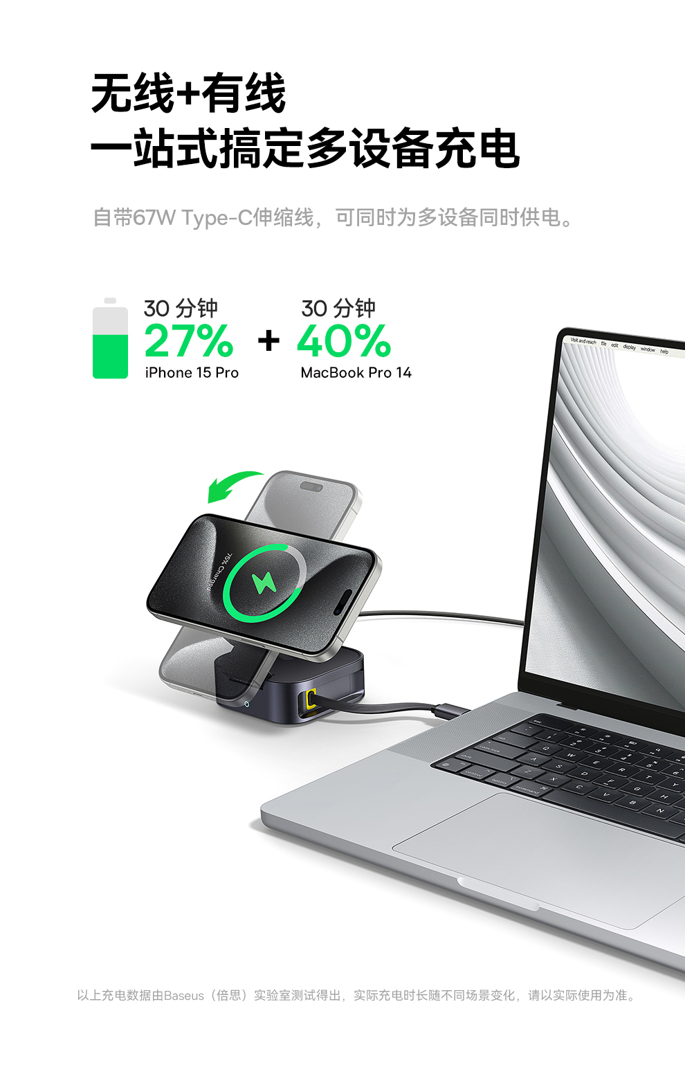 倍思 MagPro 二合一磁吸无线充电器 Qi2 67W 星际黑 (含:倍思 弯头数据线 Type-C to Type-C 100W 1m 黑色)