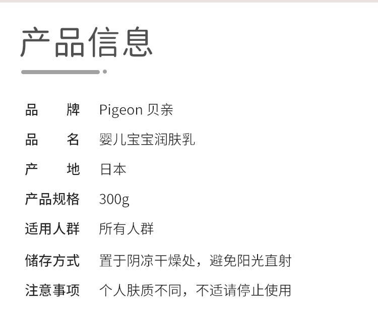 【保税仓】日本Pigeon贝亲婴儿润肤乳滋润型300g