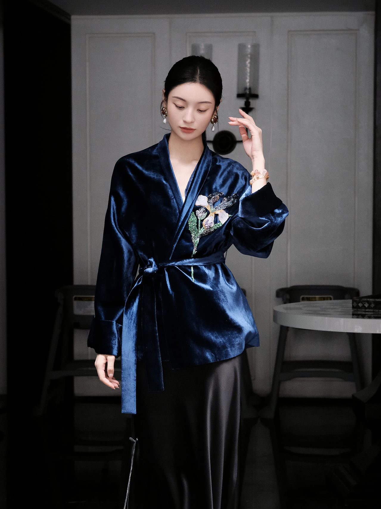 盛唐婧 |双面穿凤戏牡丹真丝外套