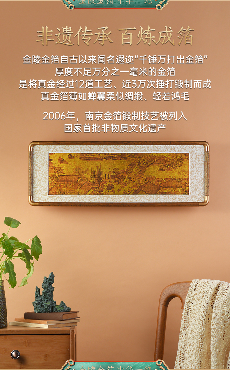 金陵金箔装饰画办公室客厅沙发背景墙玄关大尺寸壁画挂画接受定制