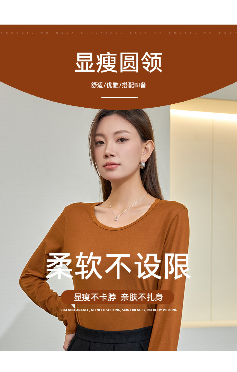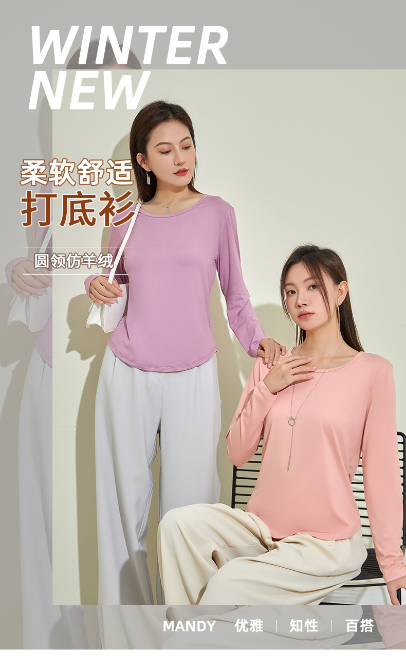 【秒杀❗️49.9抢2件🔥气质打底衫】优雅知性,百搭保暖,修身显瘦不臃肿!软糯圆领高级感面膜仿羊绒春秋季新款内搭长袖T恤女显瘦修身上衣