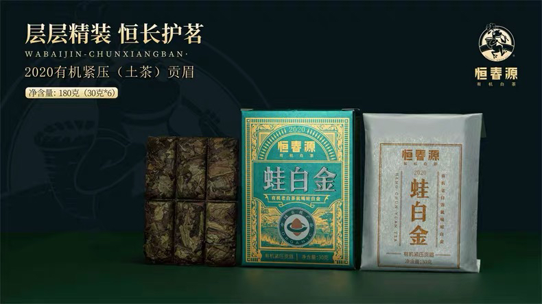 中秋节|福鼎白茶·恒春源有机白茶【蛙白金.纯享版】2020年有机紧压贡眉,净含量:180g(30g*6片*1盒)拍10盒送1盒