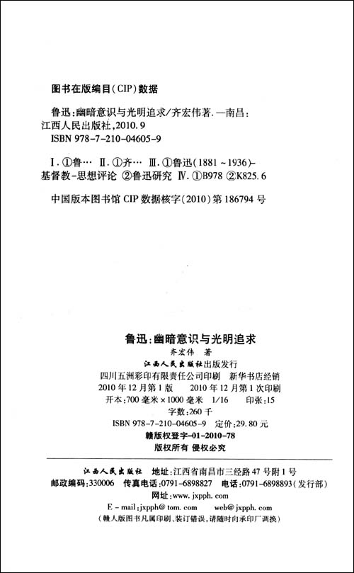 《鲁迅:幽暗意识与光明追求》由江西人民出版社出版。