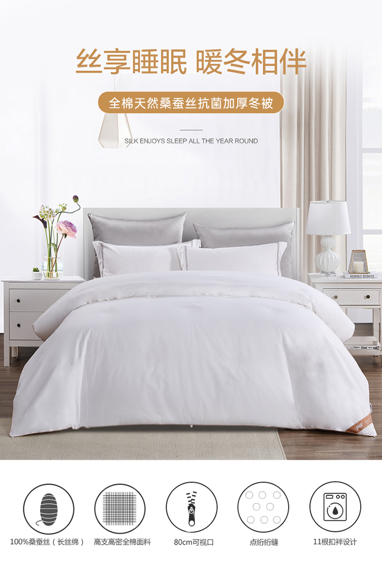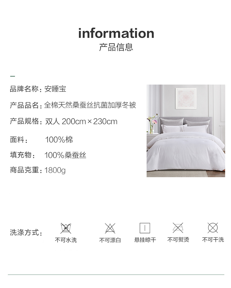 10楼 安睡宝 全棉天然桑蚕丝抗菌加厚冬被200*230cm 吊牌价6299元 活动价1999元