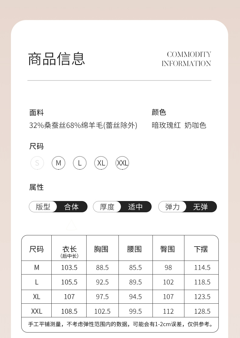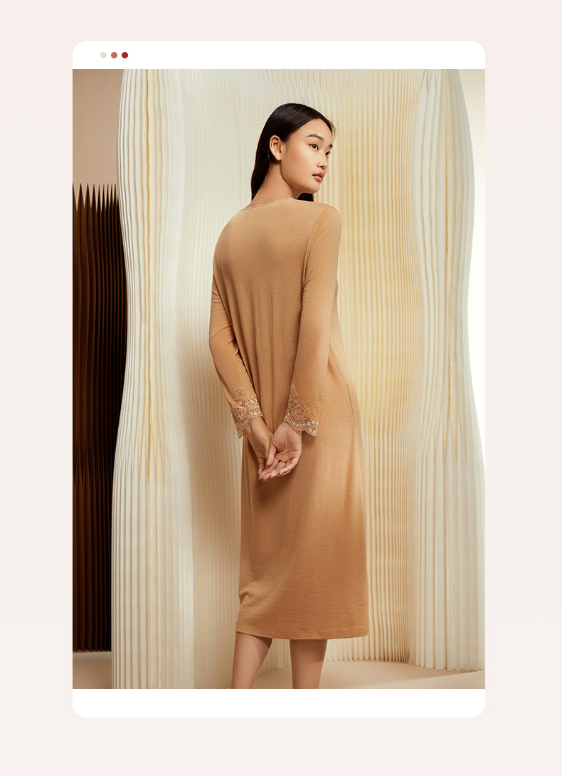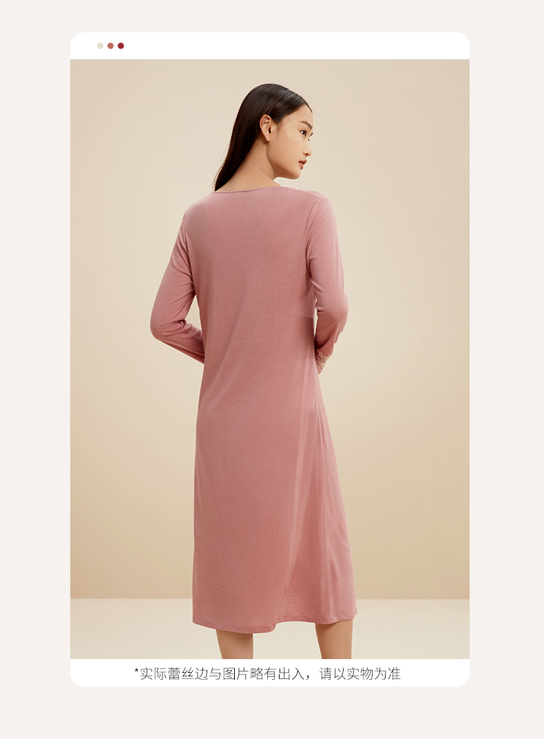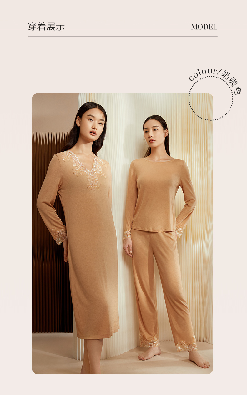 金三塔桑蚕丝&羊毛 温暖轻盈 舒适亲肤女士拼蕾丝优雅睡裙家居服 YZFCD301