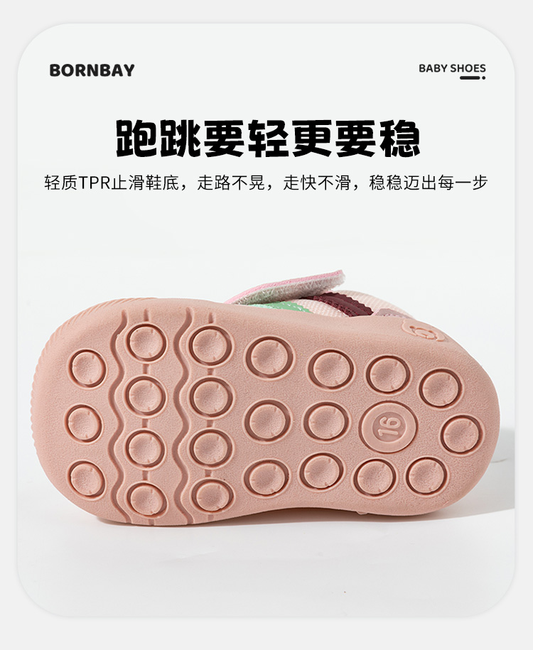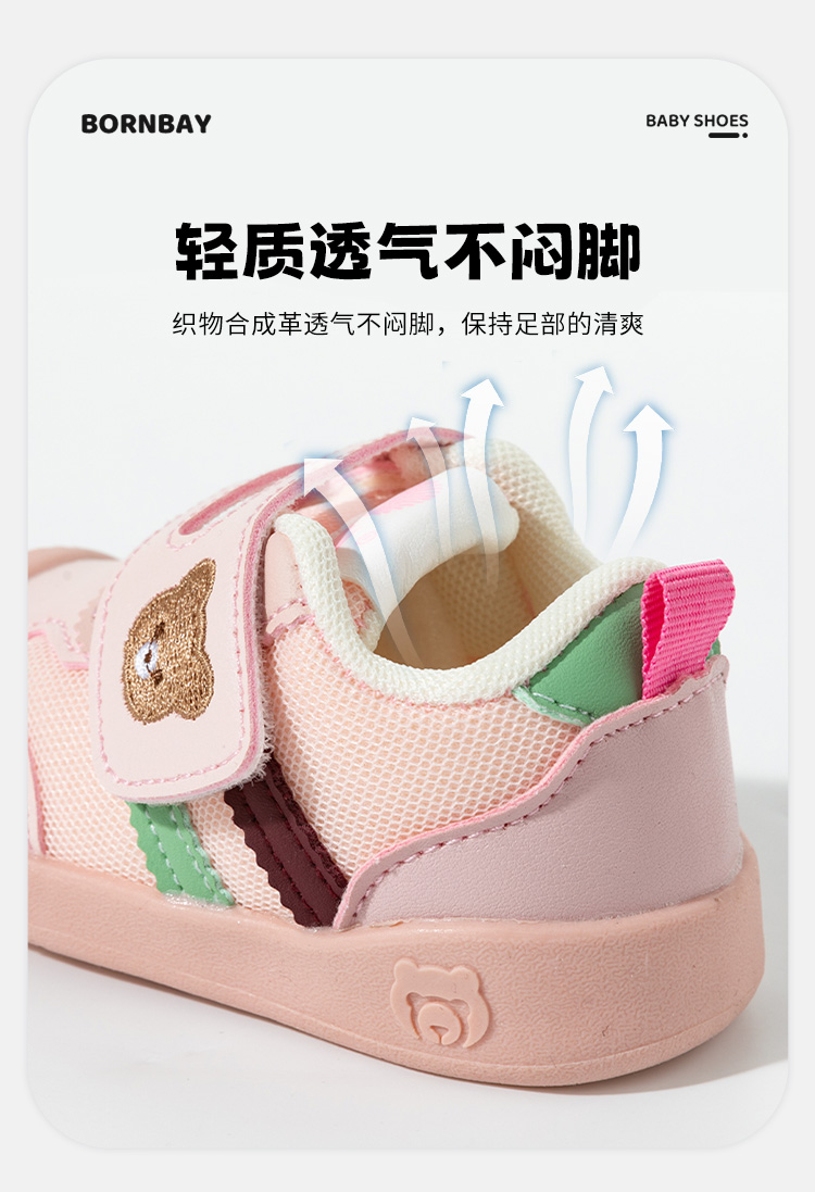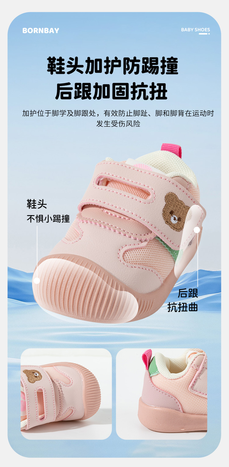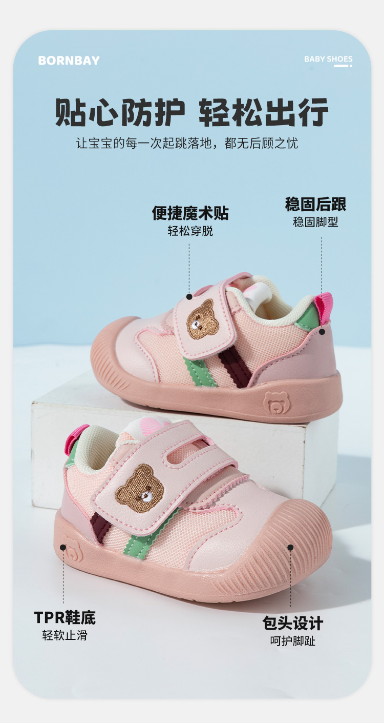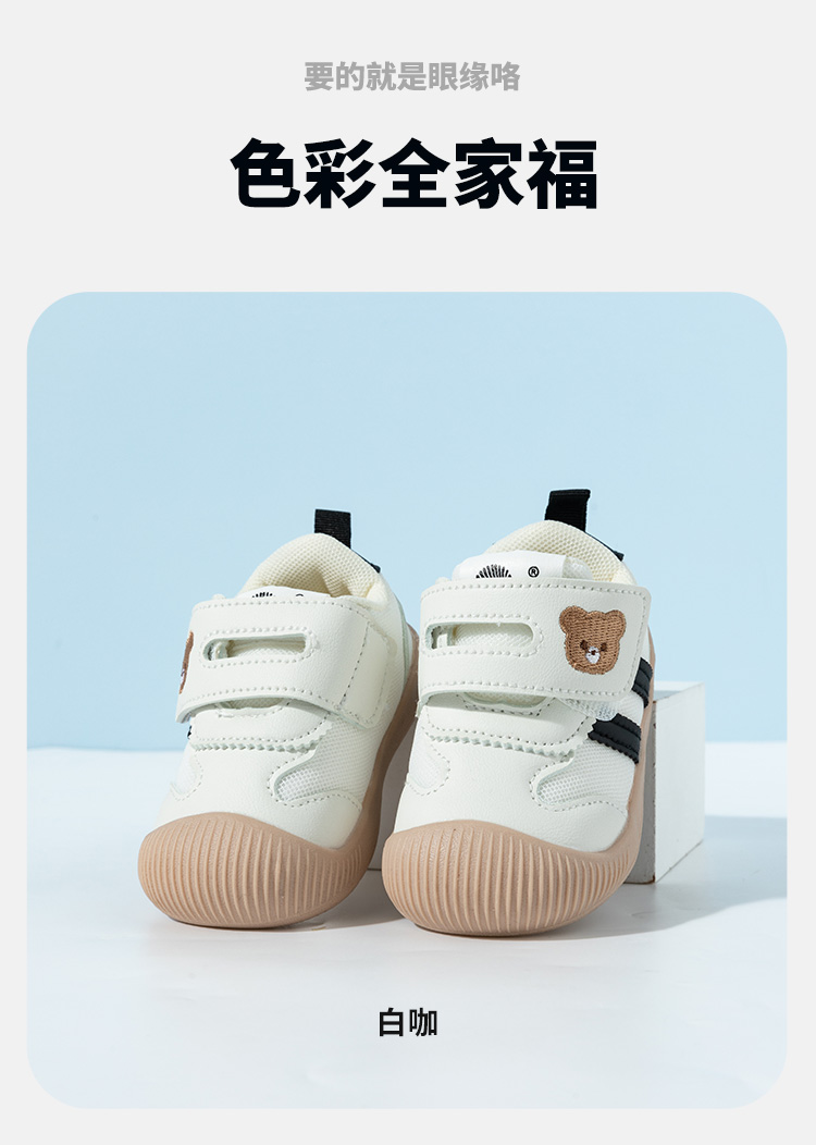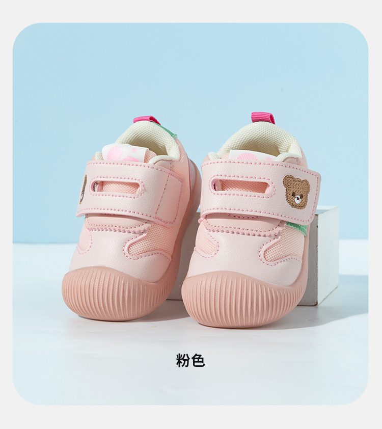 贝贝怡25春季新款男女宝宝学步鞋婴幼儿童稳步鞋卡通小熊魔术贴包头鞋ZB1EX022
