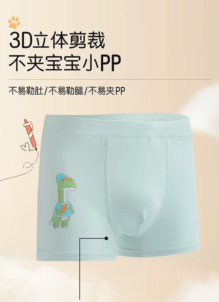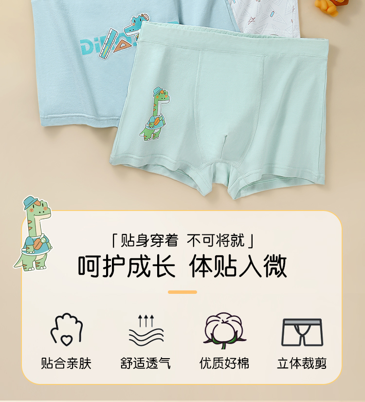 N3-【5条装】【男童 】亲肤新疆棉 3D立体剪裁 恐龙乐园+百变小熊【青春系列】